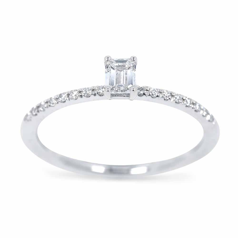 0,24 karátos smaragd csiszolású kővel foglalt gyémánt eljegyzési gyűrű oldalt is briliánsokkal