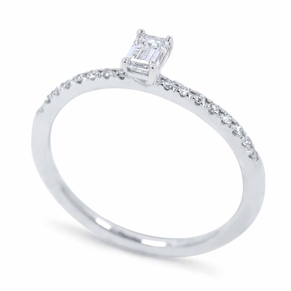 White & Black Solitaire: Celeste 0,3 Karátos Gyémánt Eljegyzési Gyűrű - Emerald Cut