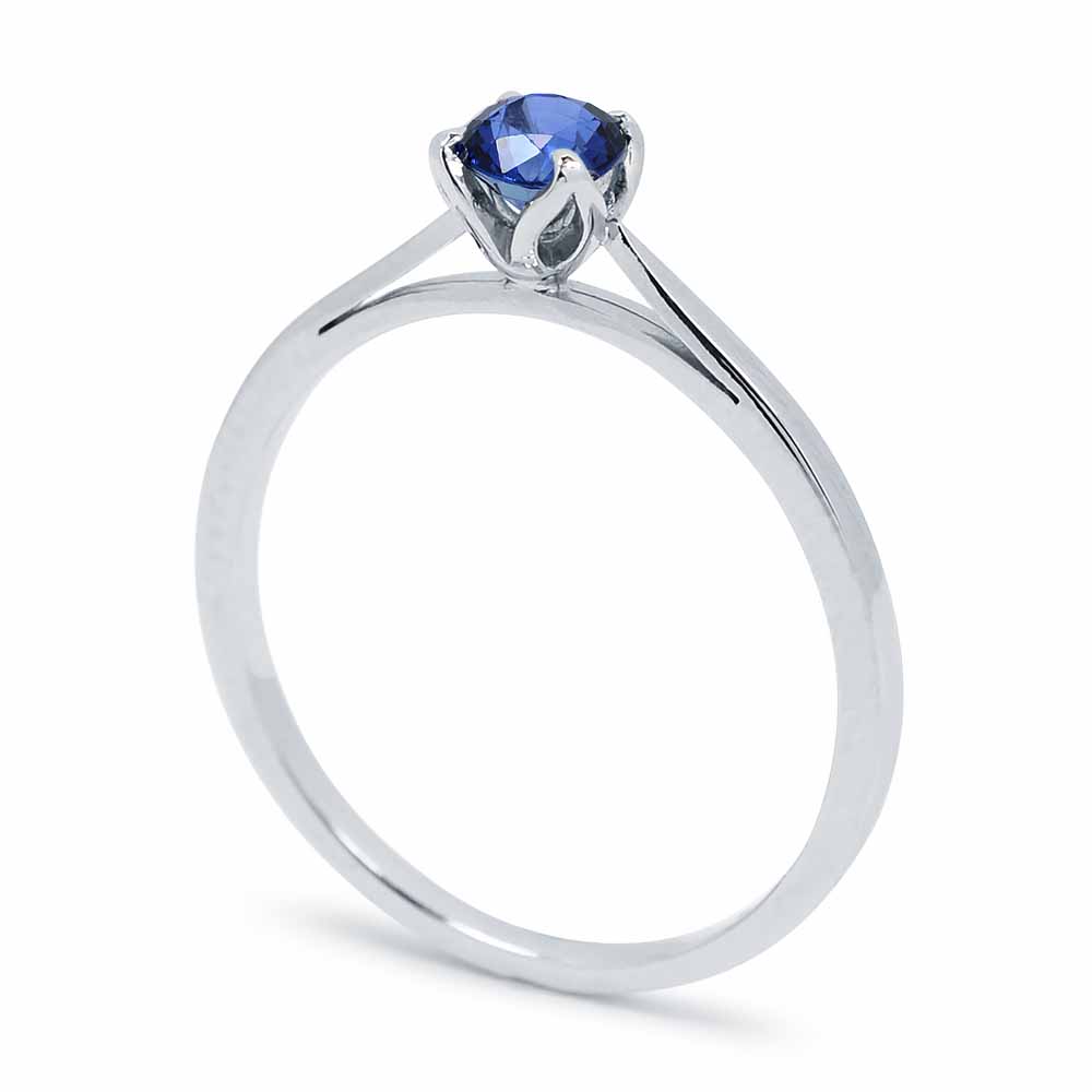 Élénk búzavirág kék színű, 4,2mm átmérőjű, 0,336 karátos kék zafír kővel díszített eljegyzési gyűrű, mely 14 karátos fehéraranyból készült. A zafír követ tulipánszirom formájú foglalatok ölelik körbe. A gyűrű oldalsó, sín része szépen kettéválik és hozzásimul a foglalathoz. A zafír gyűrű súlya 1,4 gramm. Szükség esetén díjmentesen méretre igazítjuk. Ha még több érdekel a zafír kövekről: Zafír ékszer - Uralkodói vér az örökkévalóságban. Készletről megvásárolható.