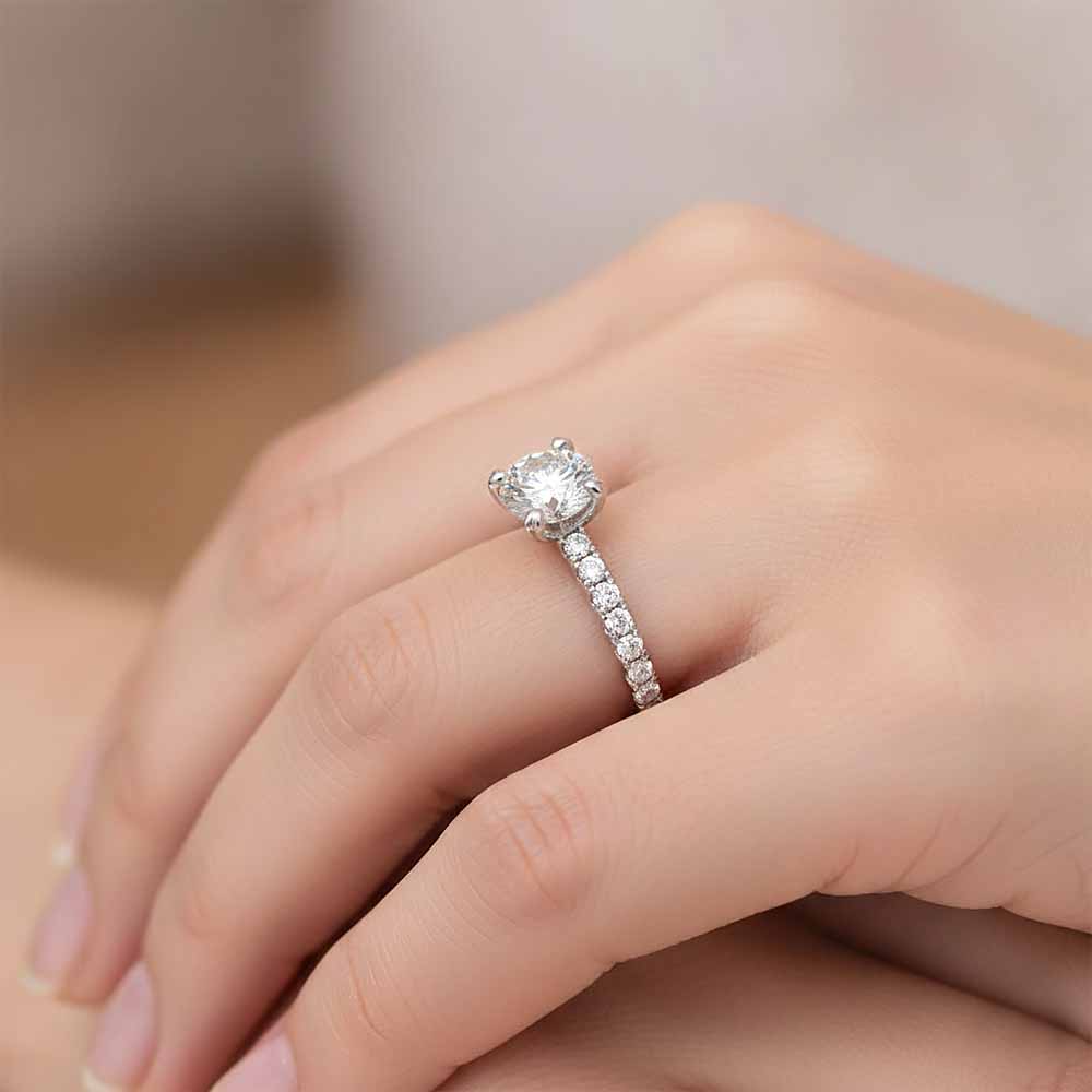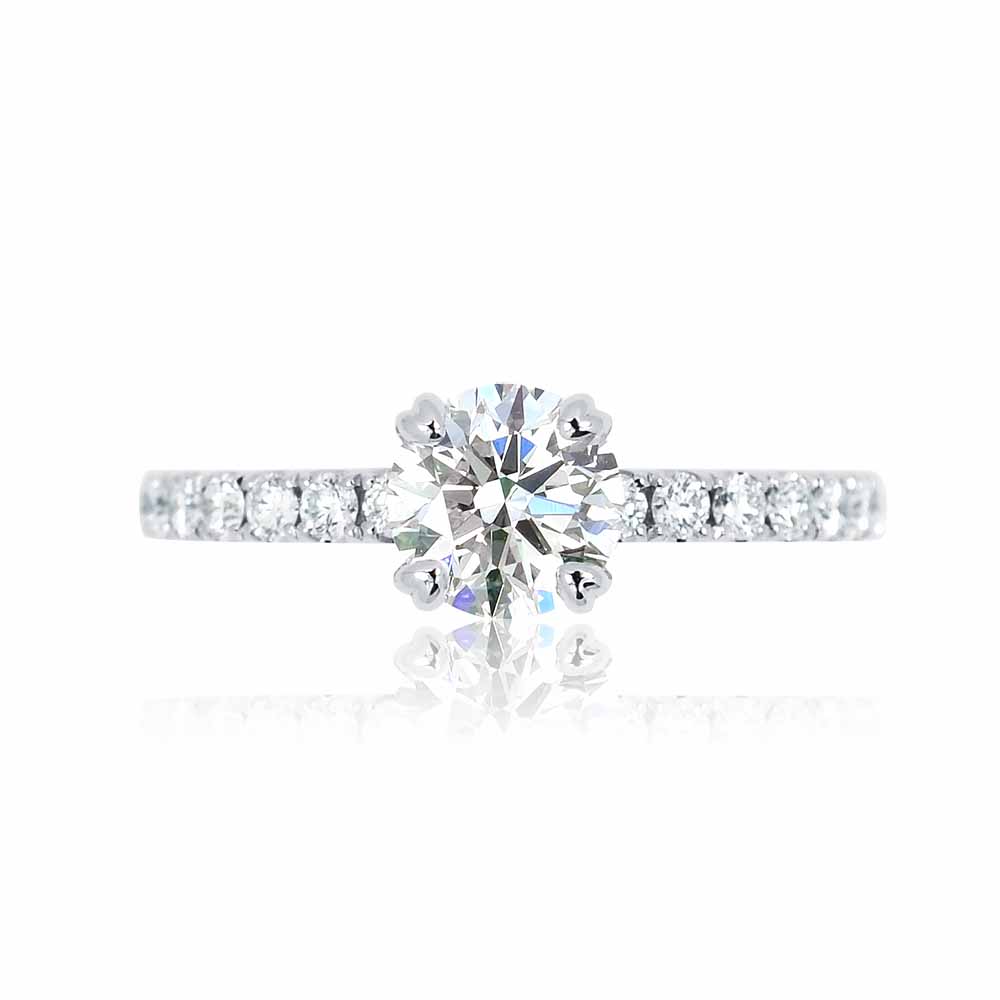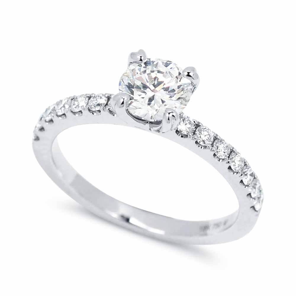1+0,33 karátos gyémánt eljegyzési gyűrű 18K fehéraranyból, oldalában további 7-7 briliánssal