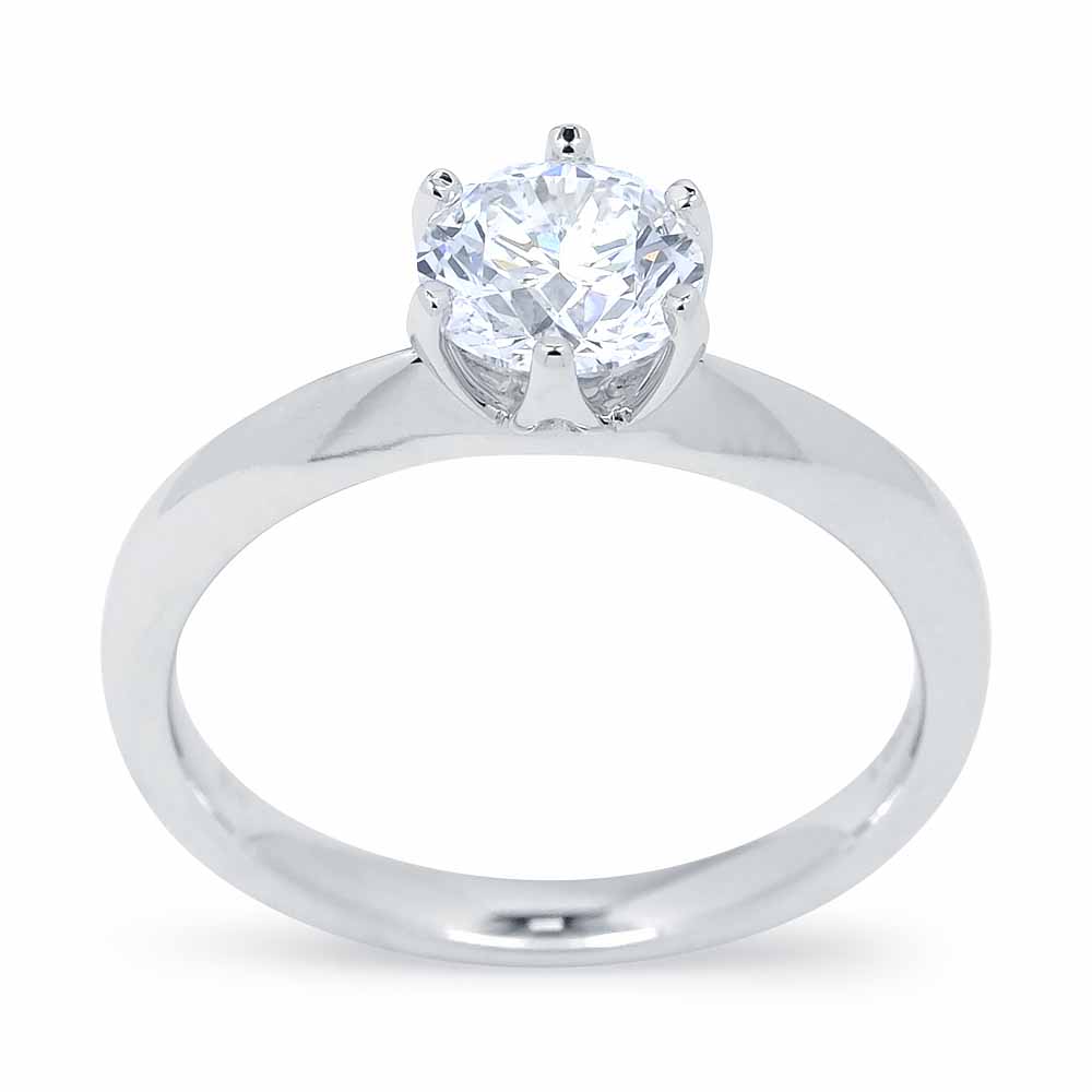 Egy karátos gyémánt eljegyzési gyűrű tündöklő briliáns csiszolású gyémánttal 18K fehérarany kehelyben - G VS2 GIA