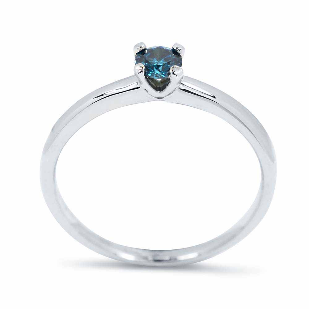 Kék gyémánt eljegyzési gyűrű 0,24 karátos briliánssal kecses, kerek profilú, 14 karátos fehér aranyból