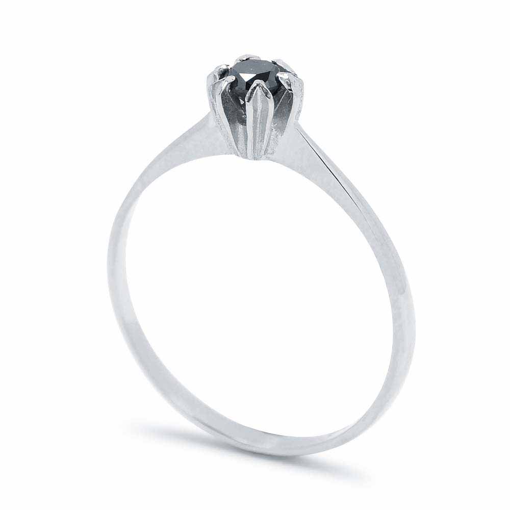 Fehérarany eljegyzési gyűrű 3,5mm-es fekete gyémánttal hat karmos foglalatban, egyedileg készítve