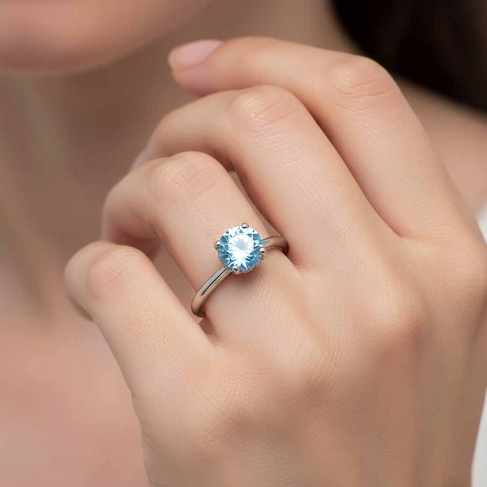 White & Black Solitaire: Hidden Halo Kék Labor Gyémánt Eljegyzési Gyűrű - 1,1 Karát