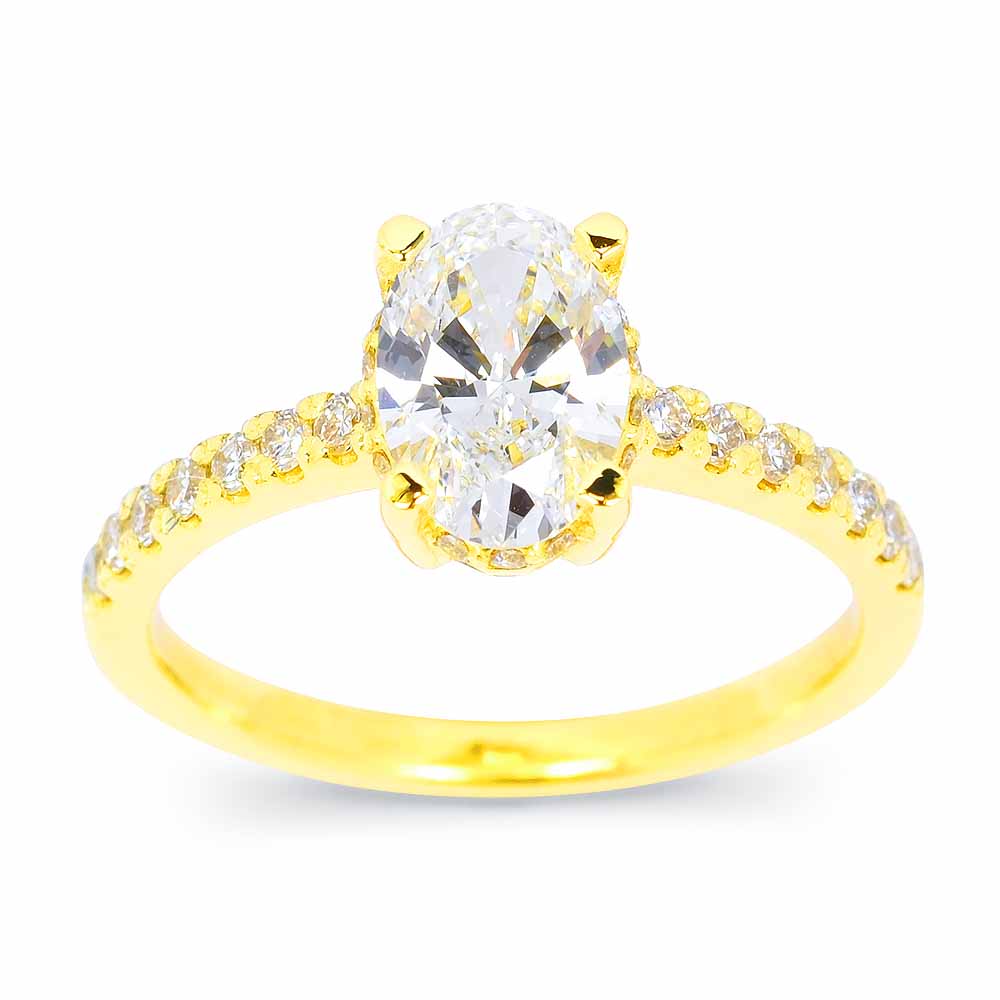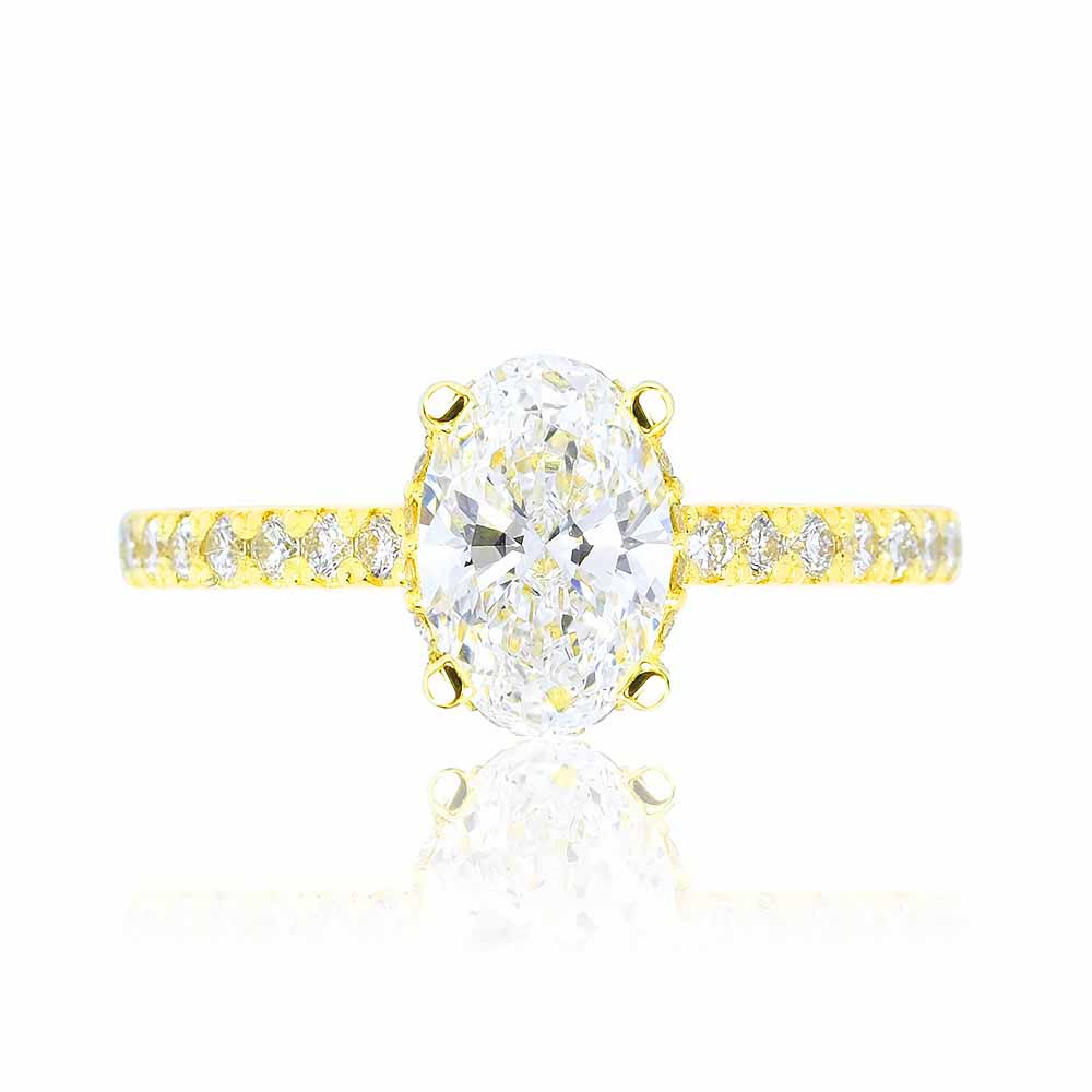 Labor ovális gyémánt eljegyzési gyűrű aranyból - Hidden Halo - 1,4 karát - IGI