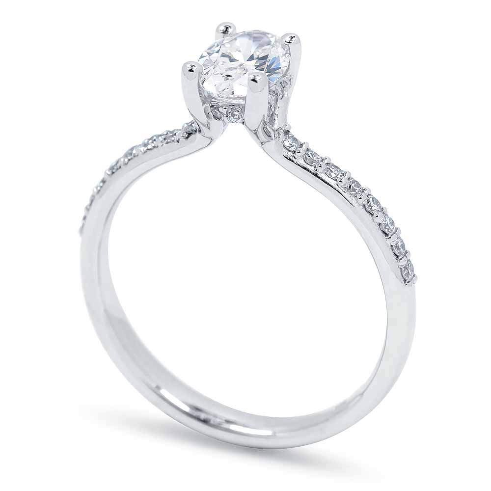 Középen 0,5 karátos, ovális csiszolású labor gyémánt eljegyzési gyűrű különleges fehérarany foglalatban - Corinne