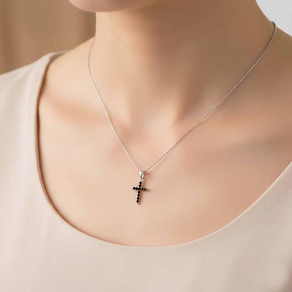 White & Black Symbols: Kereszt Medál Fehéraranyból, Fekete Gyémántokkal