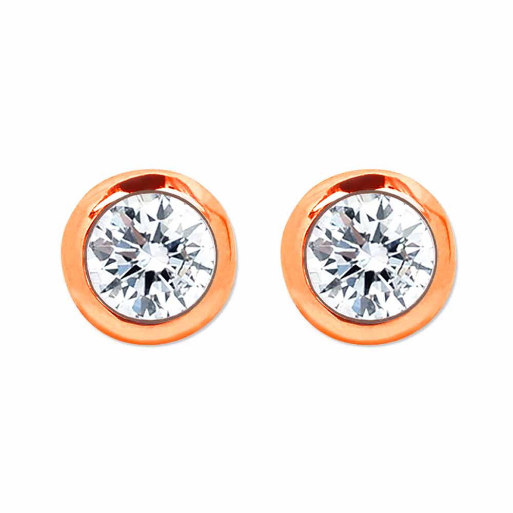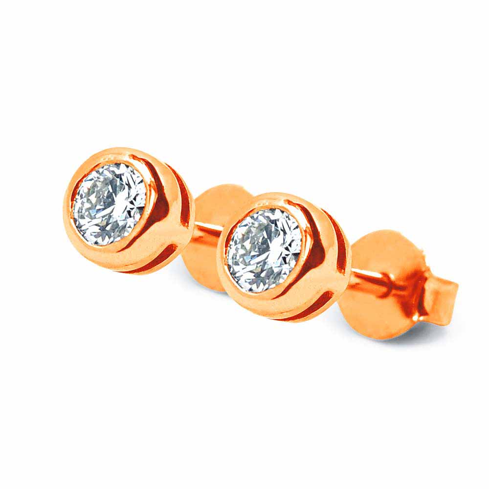 Bouton foglalatos gyémánt fülbevaló betűzős zárral - fél karát - 14 karátos rose aranyból