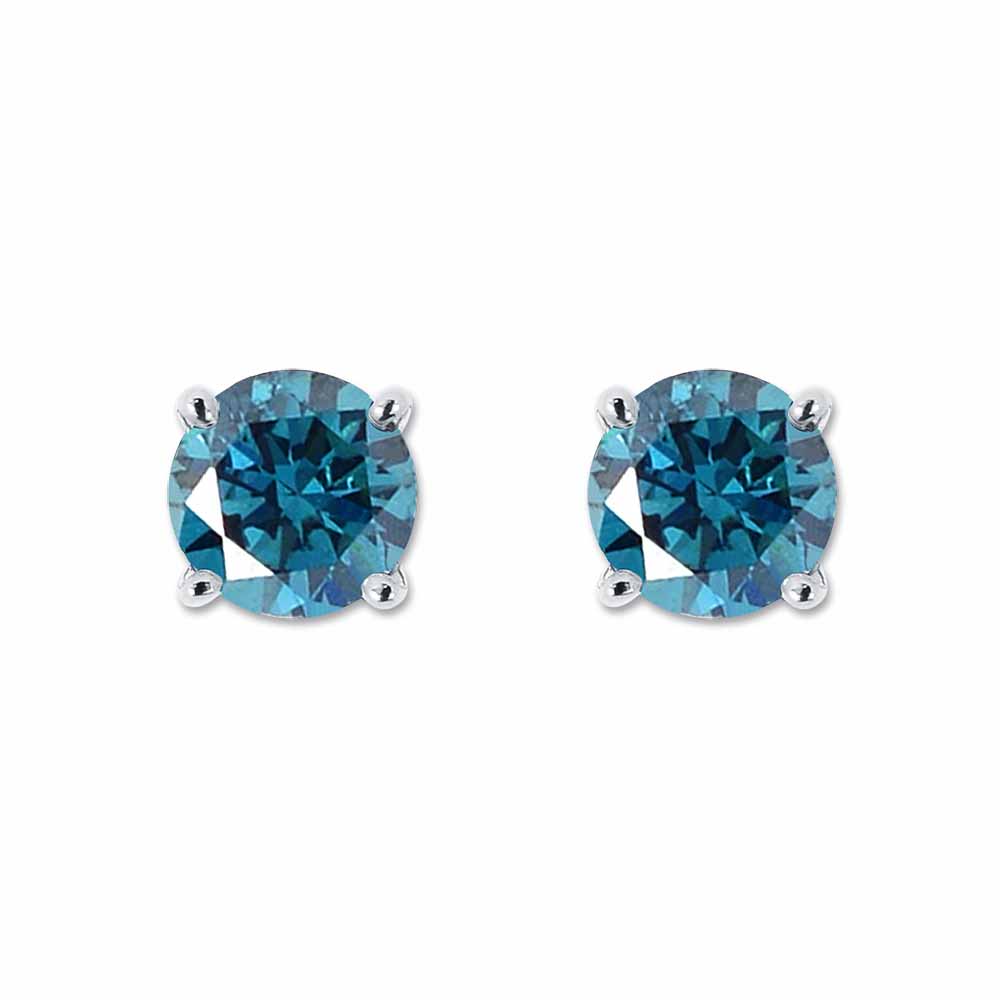 Kék gyémánt fülbevaló 14K fehéraranyból készítve, 3,0mm átmérőjű valódi színes briliánsokkal