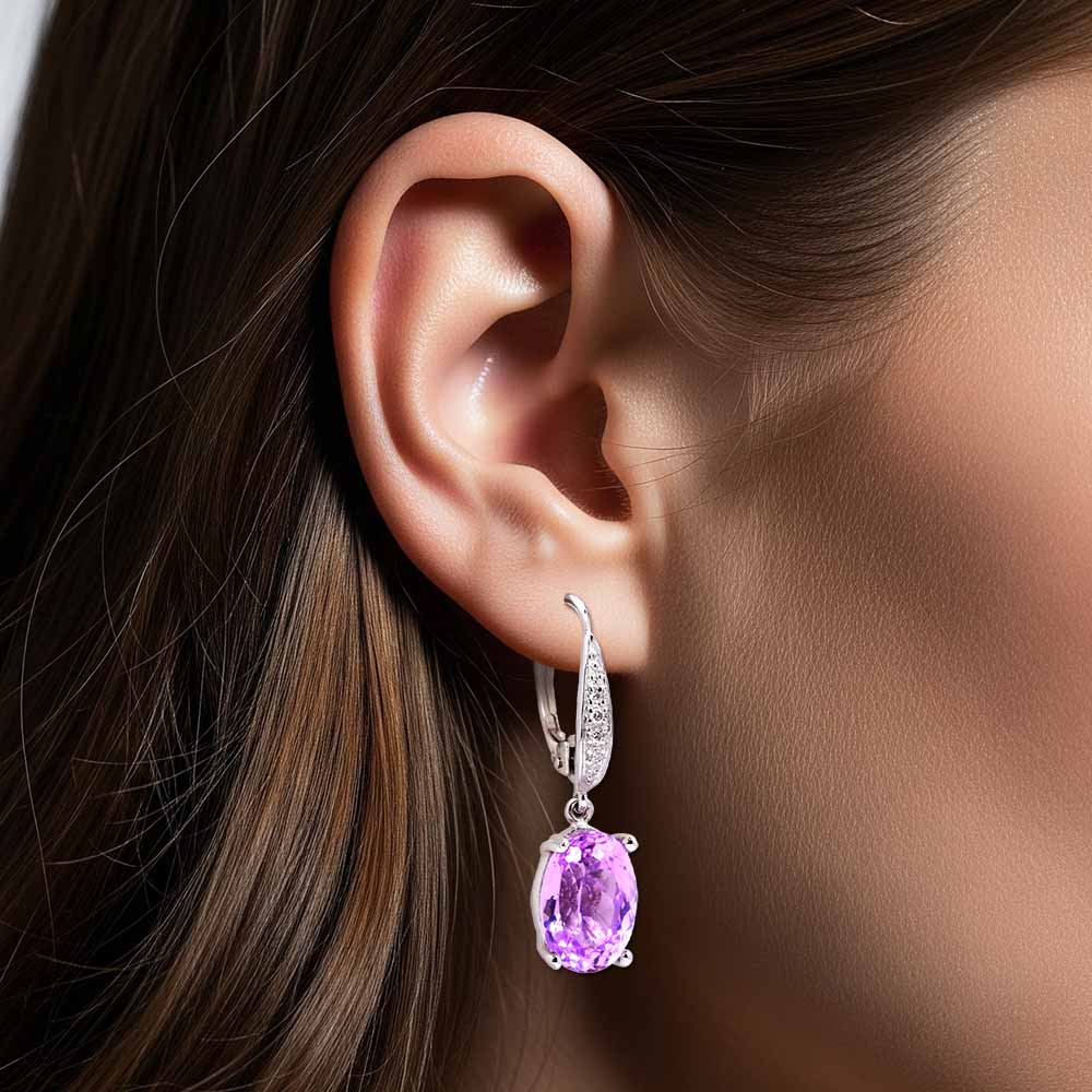 Ibolya kunzit drágaköves fülbevaló és gyémánt fülbevaló fehéraranyból