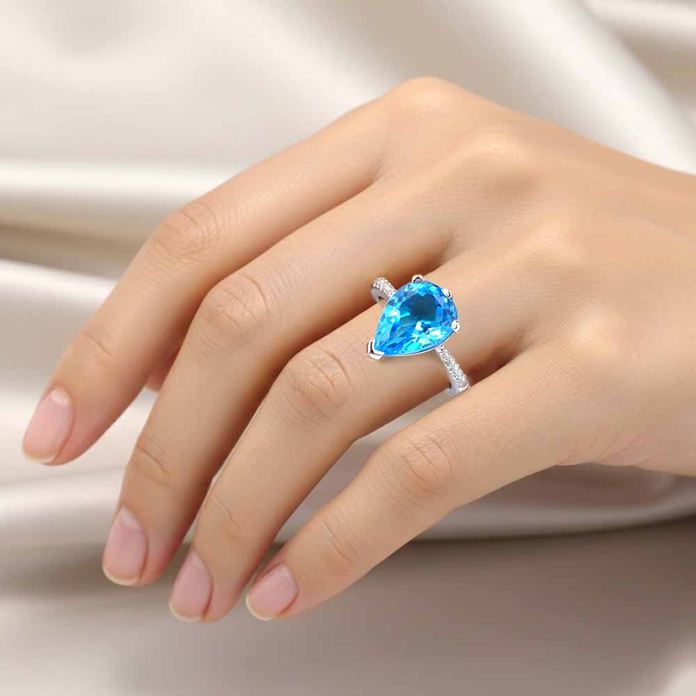 Több, mint 5 karátos élénk 'Swiss blue' topáz kővel készült egyedi gyűrű, oldalában gyémántokkal