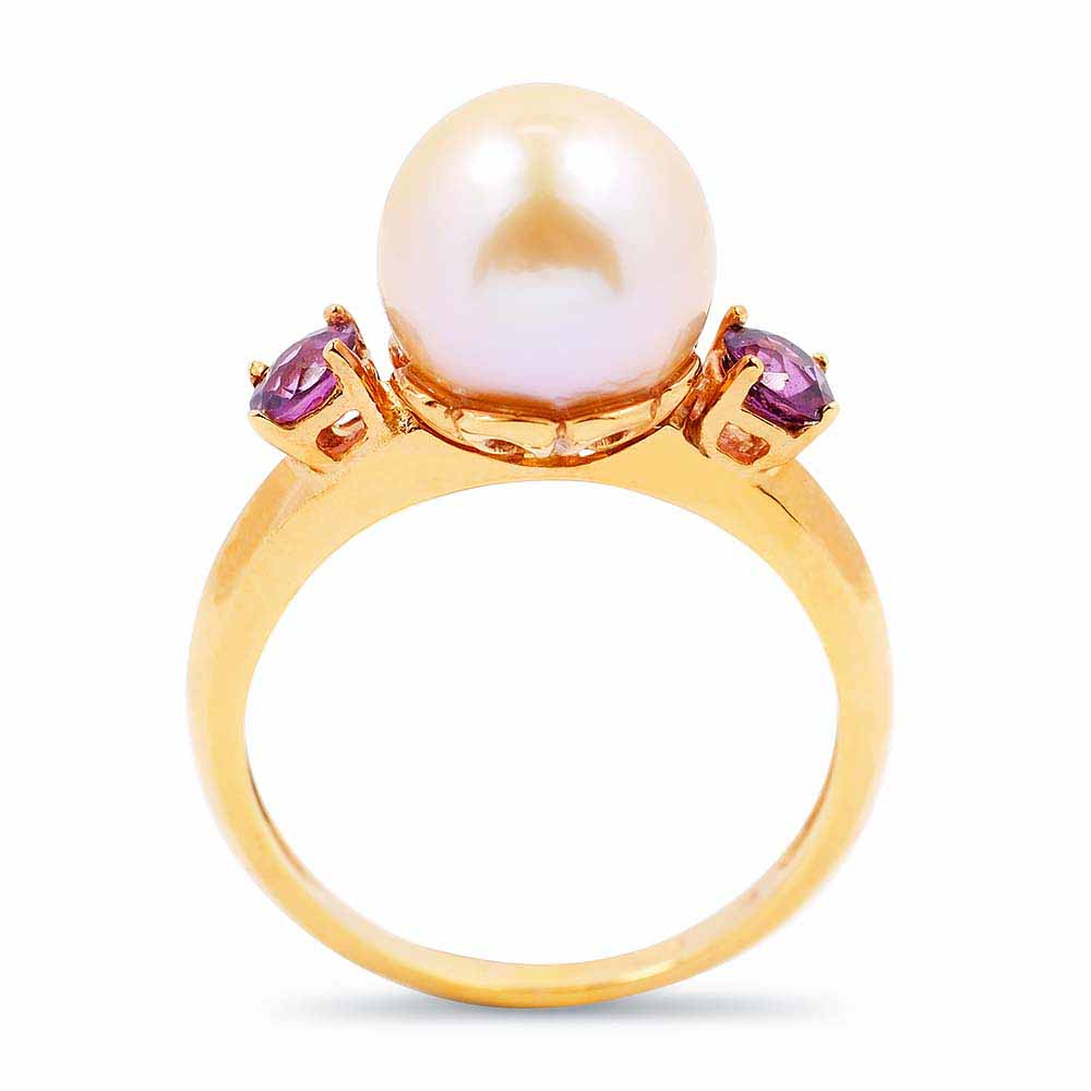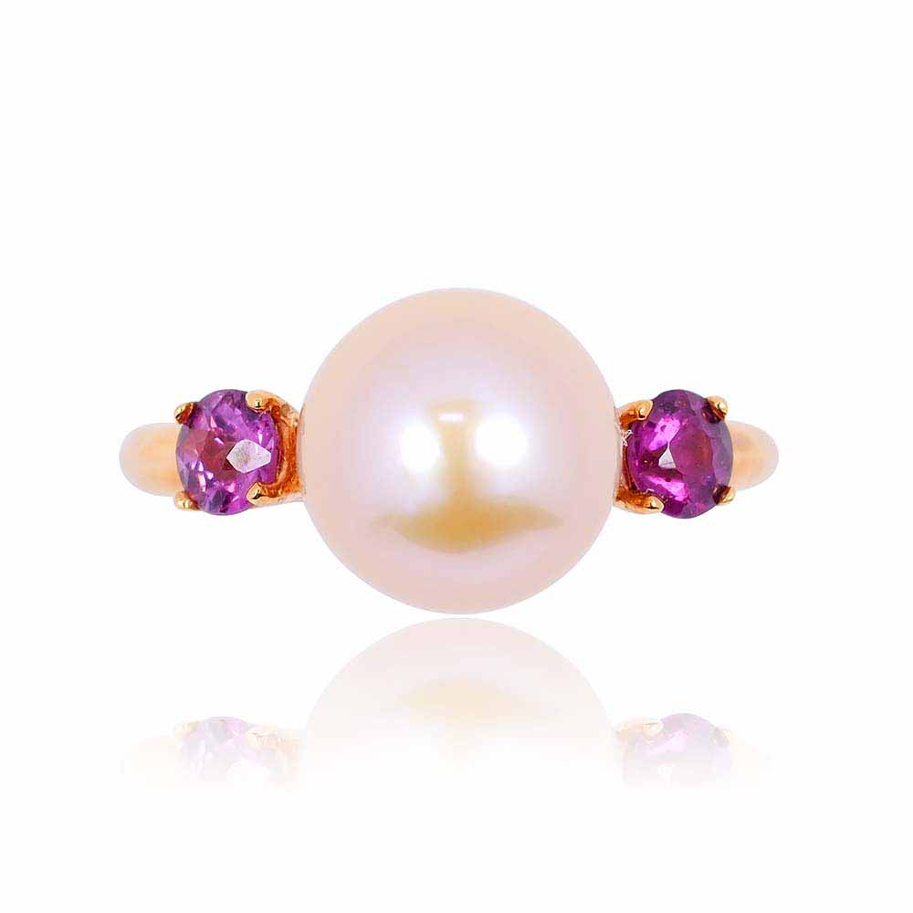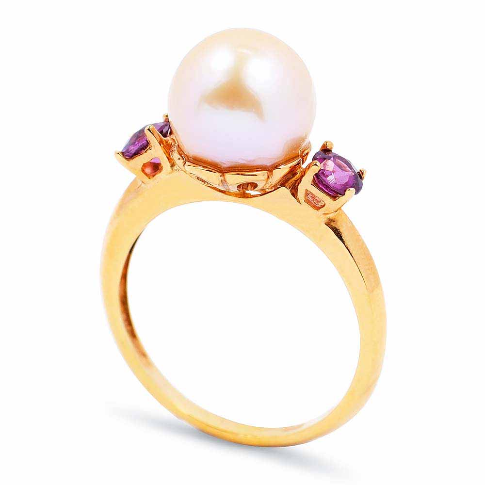 9,3mm átmérőjű, édesvízi tenyésztett rózsaszín igazgyönggyel díszített gyűrű (hibátlan gyöngy, AAA minősítés). A 14 karátos rose aranyból készült gyűrűben az igazgyöngyöt finom kidolgozású kehely tartja, két oldalt pedig 1-1 zsaszín turmalin kő csillog négykarmos foglalatban. A gyöngyos gyűrű 3,3 grammos.Kérésre díjmentesen méretre igazítjuk. Jelenleg megrendelésre.