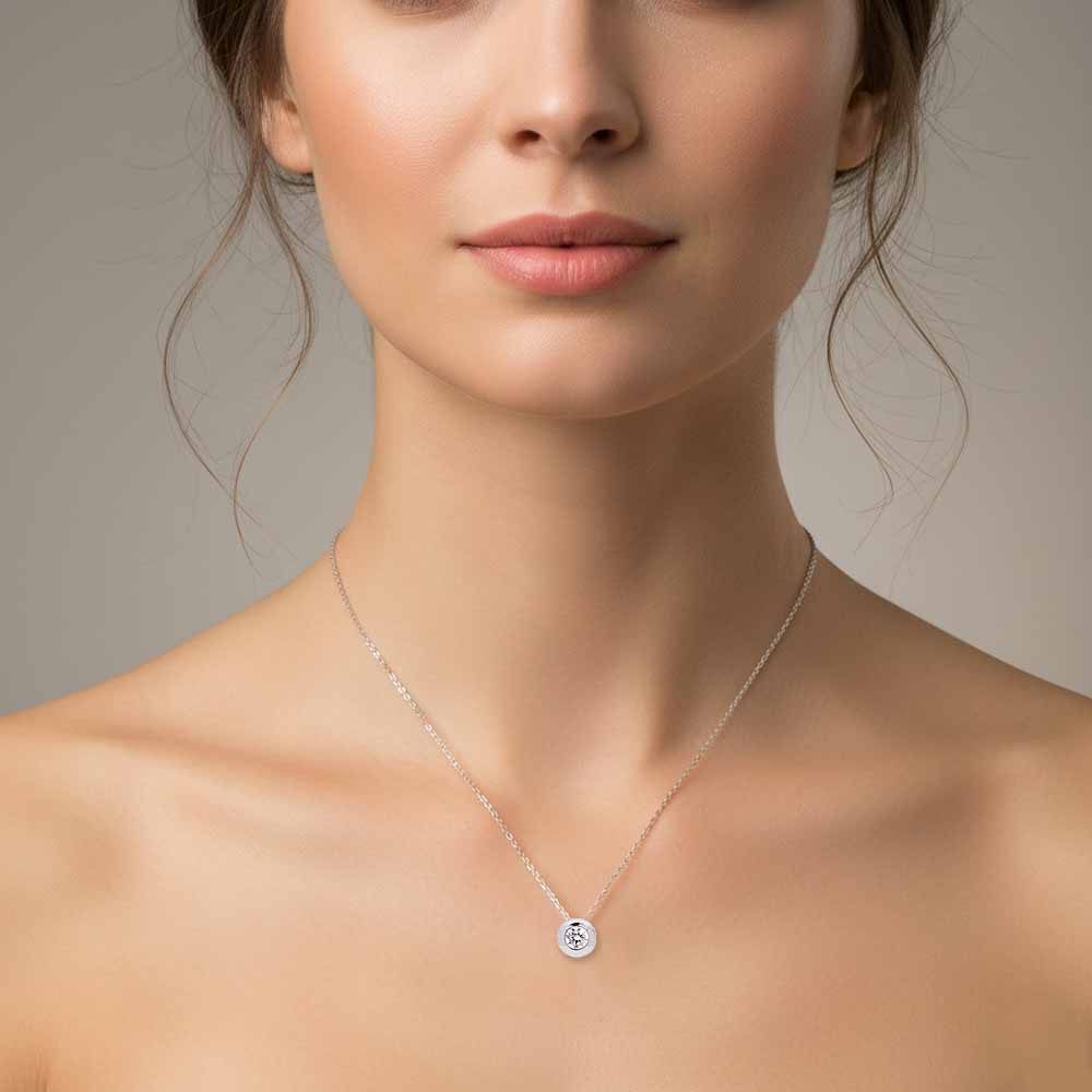 Kerek, zárt buton foglalatos gyémánt medál hozzá illő fehérarany nyakláncra fűzve - 3,4mm - 0,152ct