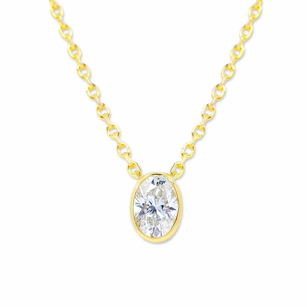 Ovális, zárt bouton foglalatos gyémánt medál hozzá illő arany nyakláncra fűzve - 0,2 karát