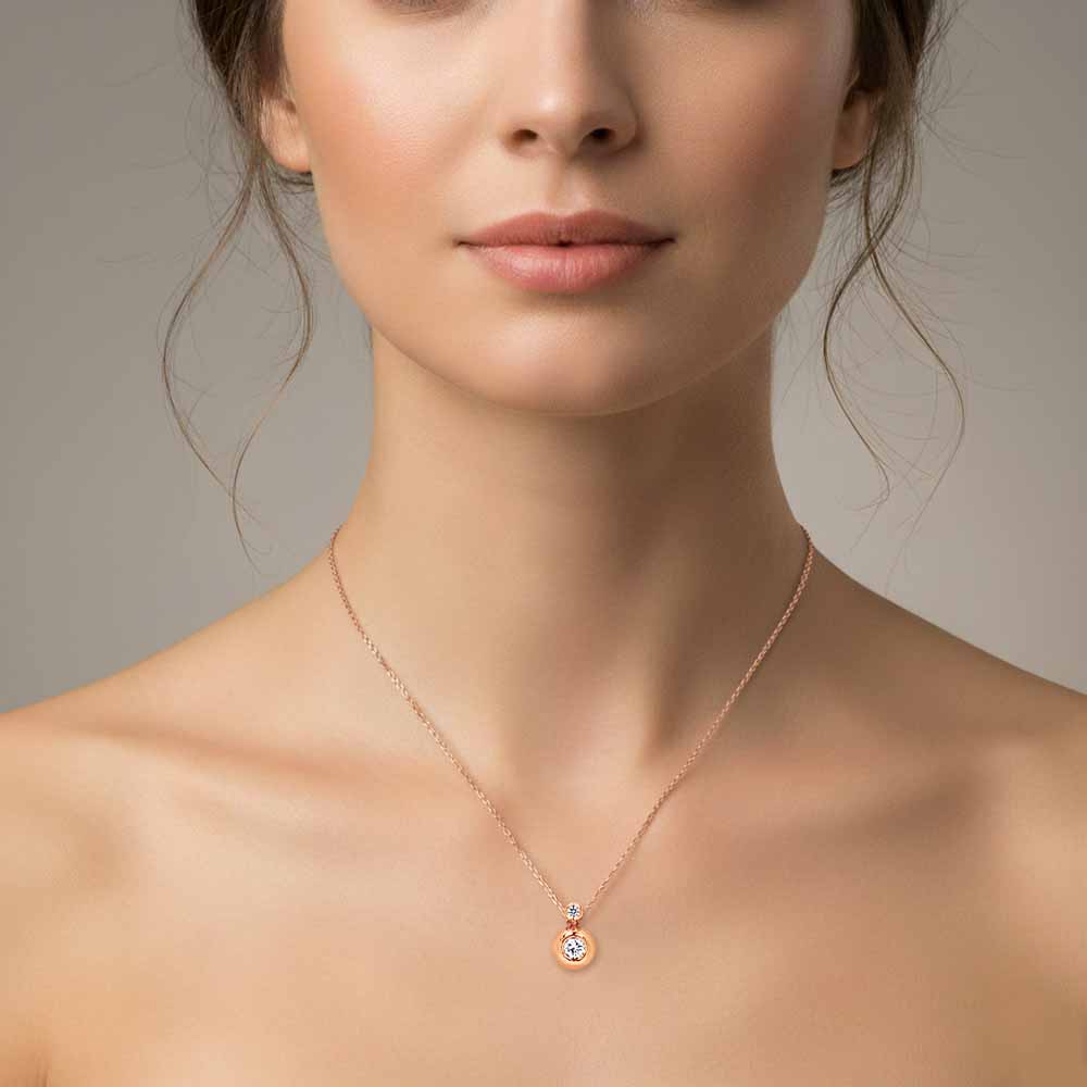 Egy 1,5mm-es égy 3,1mm-es gyémánt klasszikus bouton foglalatban, rosegold nyakláncon