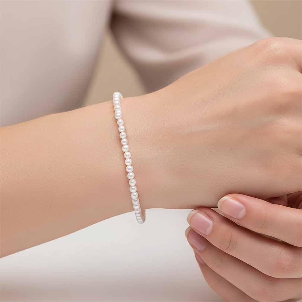 Édesvízi tenyésztett gyöngy karkötő fehérarany zárral - 3-3,5mm - AAA Top