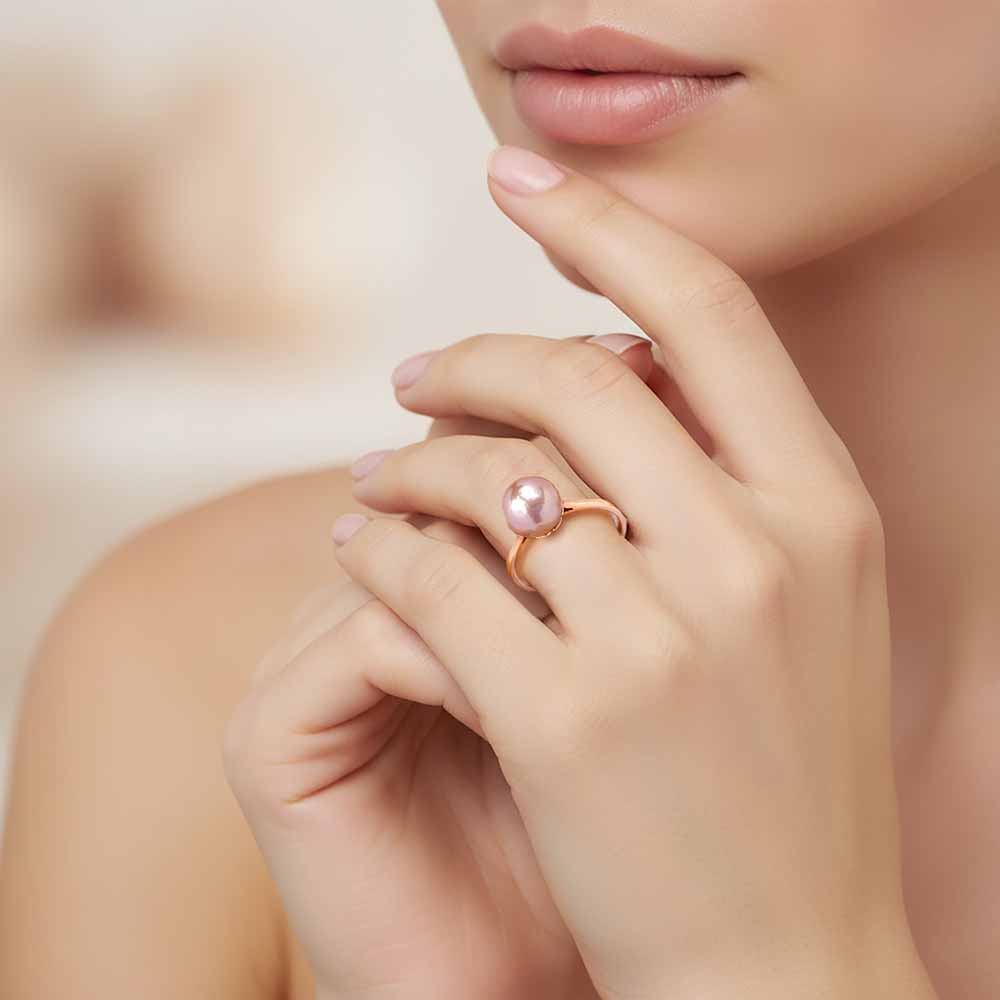 Rosegold gyűrű természetes édesvízi rózsaszín igazgyönggyel, melynek 9,6mm az átmérője