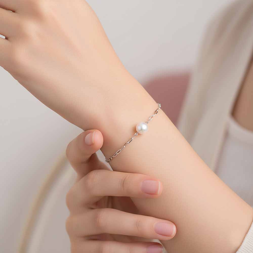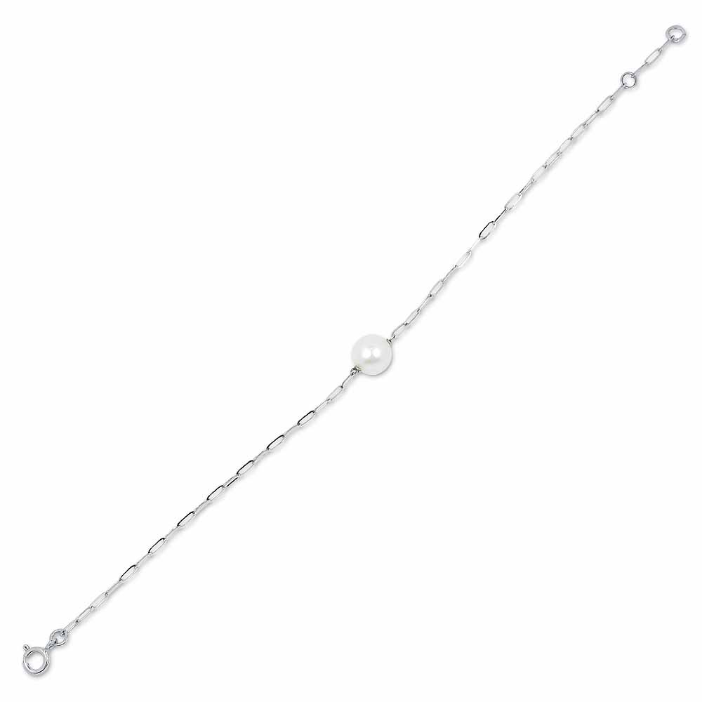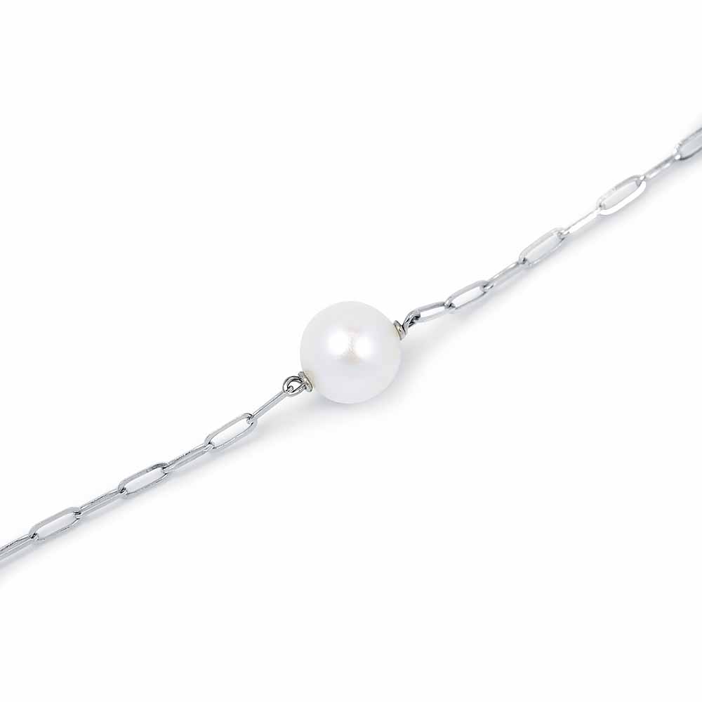 8-8,5mm-es kerek édesvízi gyöngy karlánc fehéraranyból, hosszúkás láncszemekből