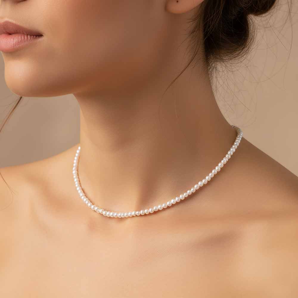 Édesvízi tenyésztett gyöngysor fehérarany zárral - 3-3,5mm - 42cm - AAA Top