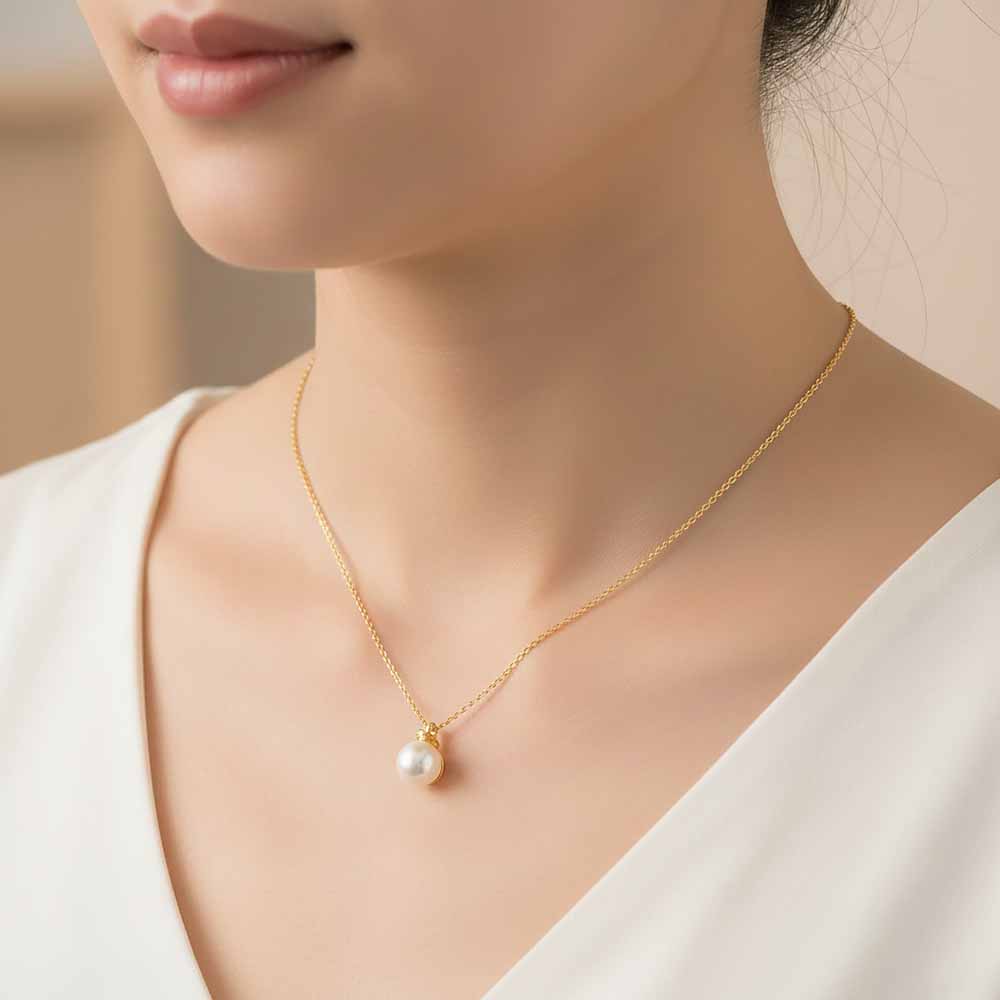 White & Black Classics: Arany Gyöngy Nyaklánc Gyémánttal - 6-6,5mm
