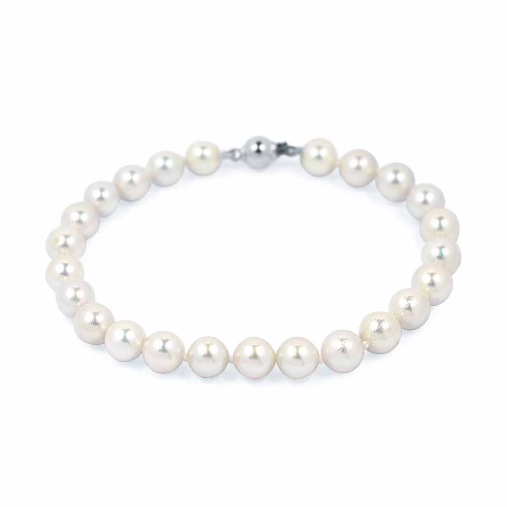 White & Black Pearl: Sósvízi Tenyésztett Fehér Gyöngykarkötő Fehérarany Zárral - 6-6,5mm