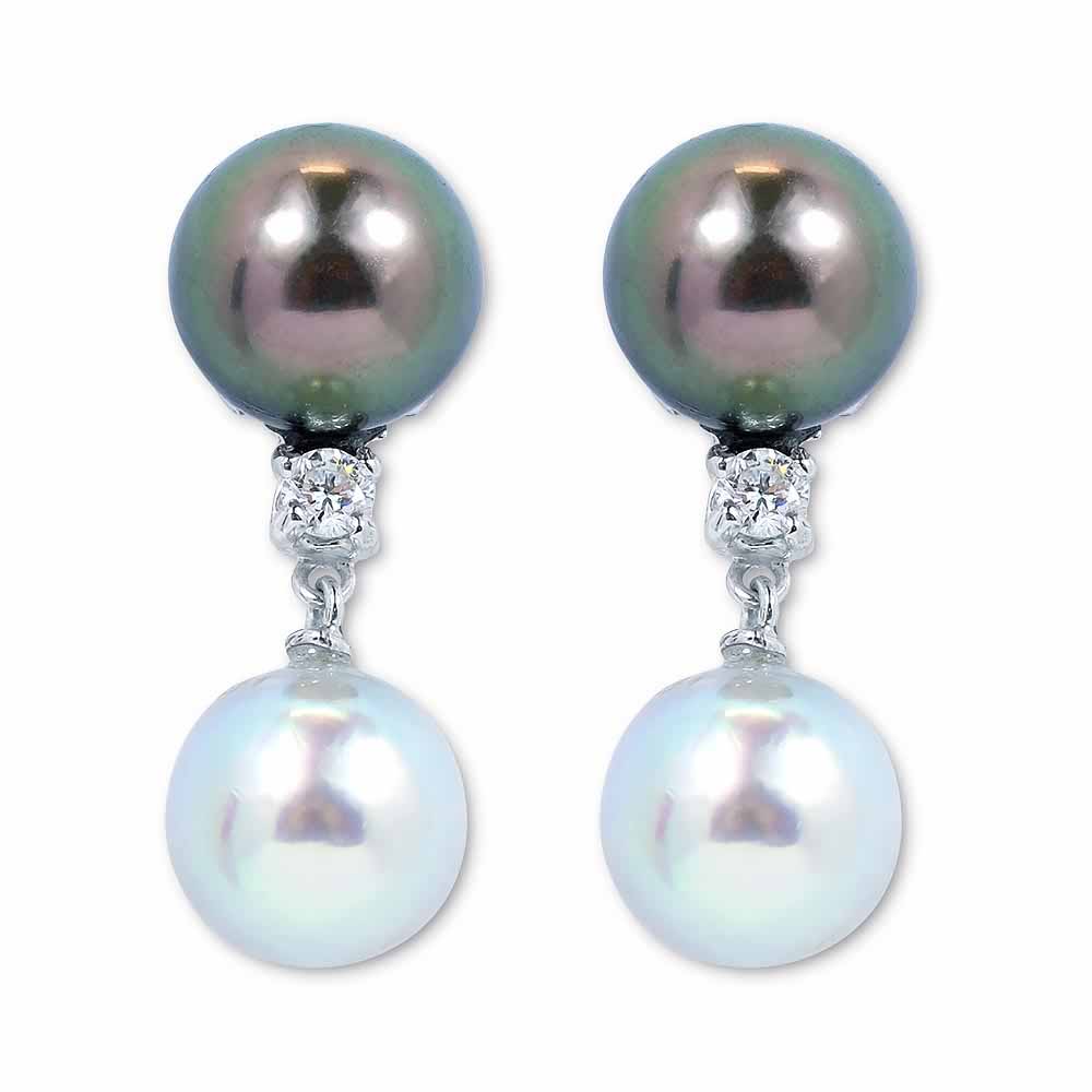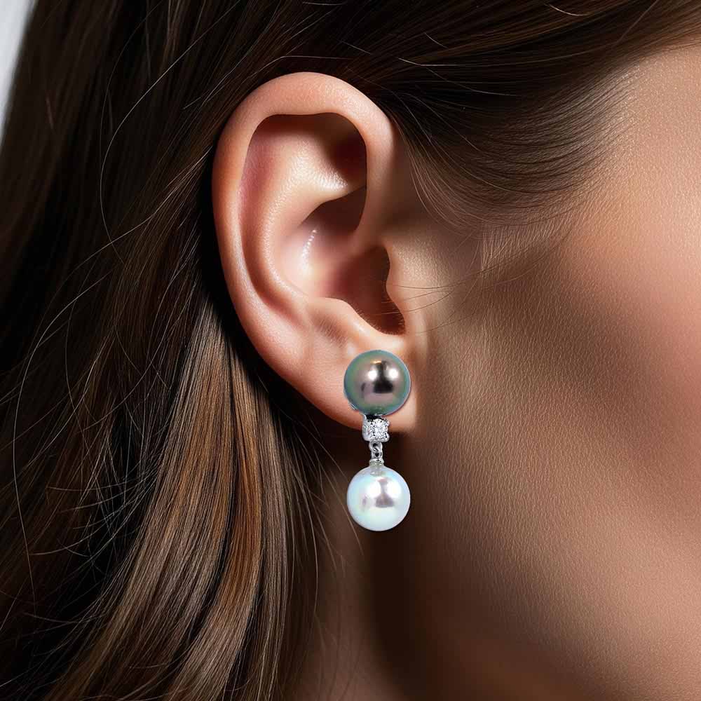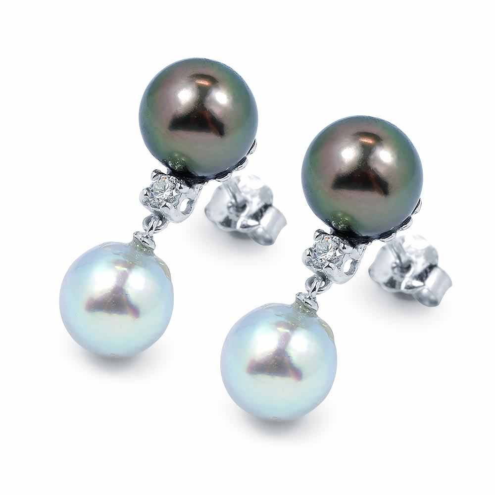 White & Black Signature: Classic Tahiti és Kék Akoya Gyöngy Fülbevaló Gyémánttal