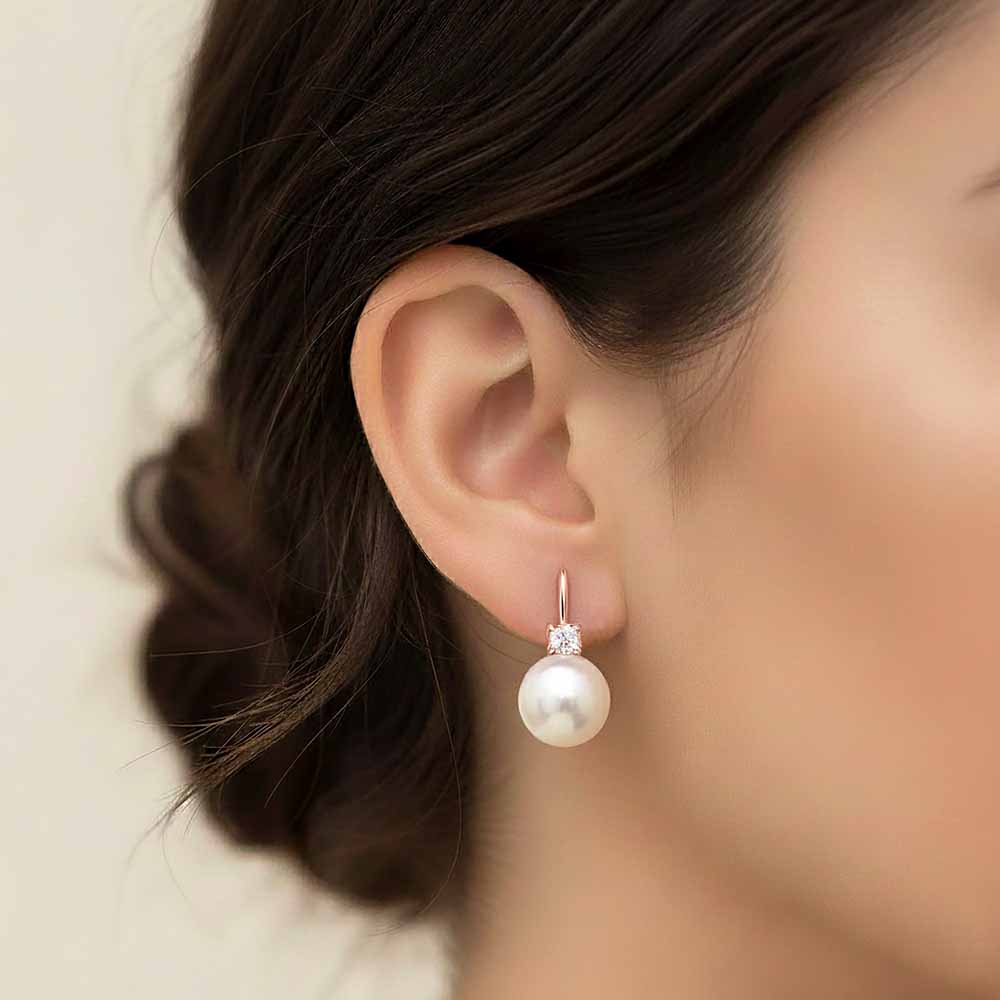 White & Black Classics: Igazgyöngy Classic Gyémánt Fülbevaló - Kapcsos - Rosegold