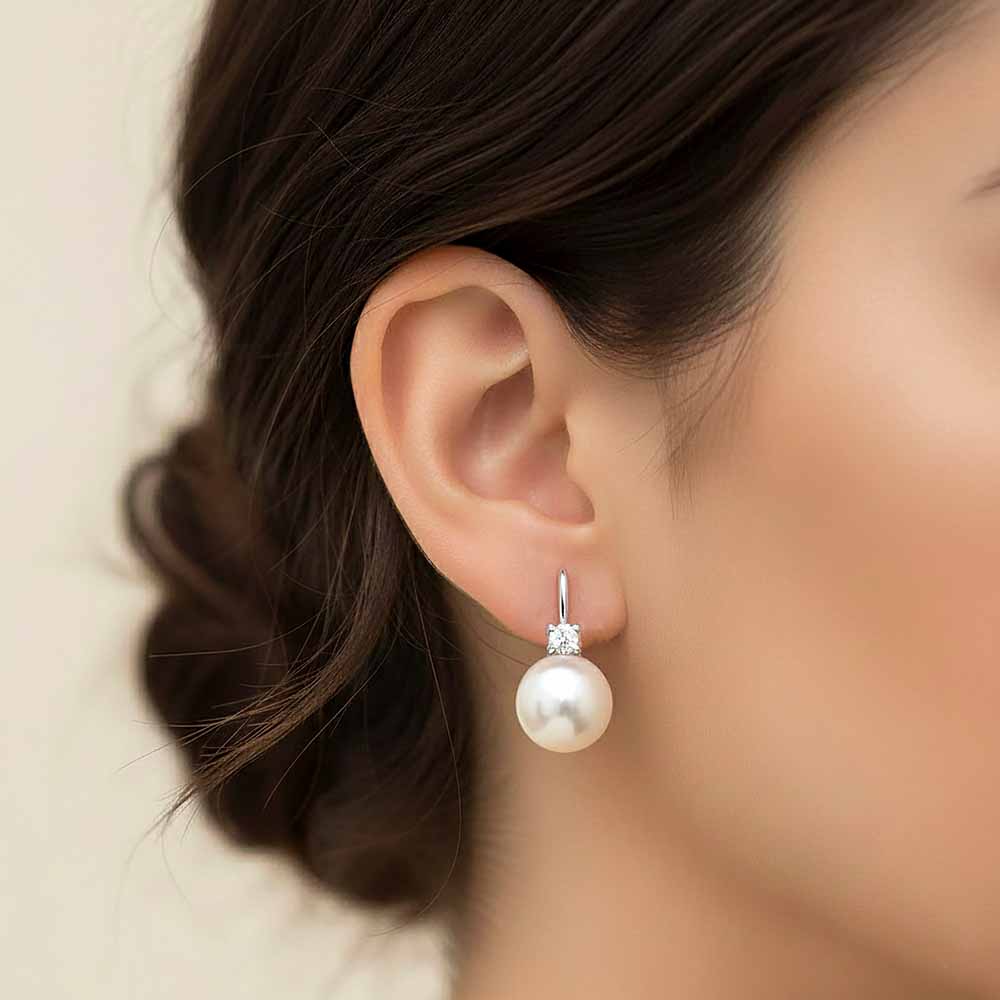 White & Black Classics: Igazgyöngy Classic Fehérarany Gyémánt Fülbevaló - Kapcsos - Édesvízi