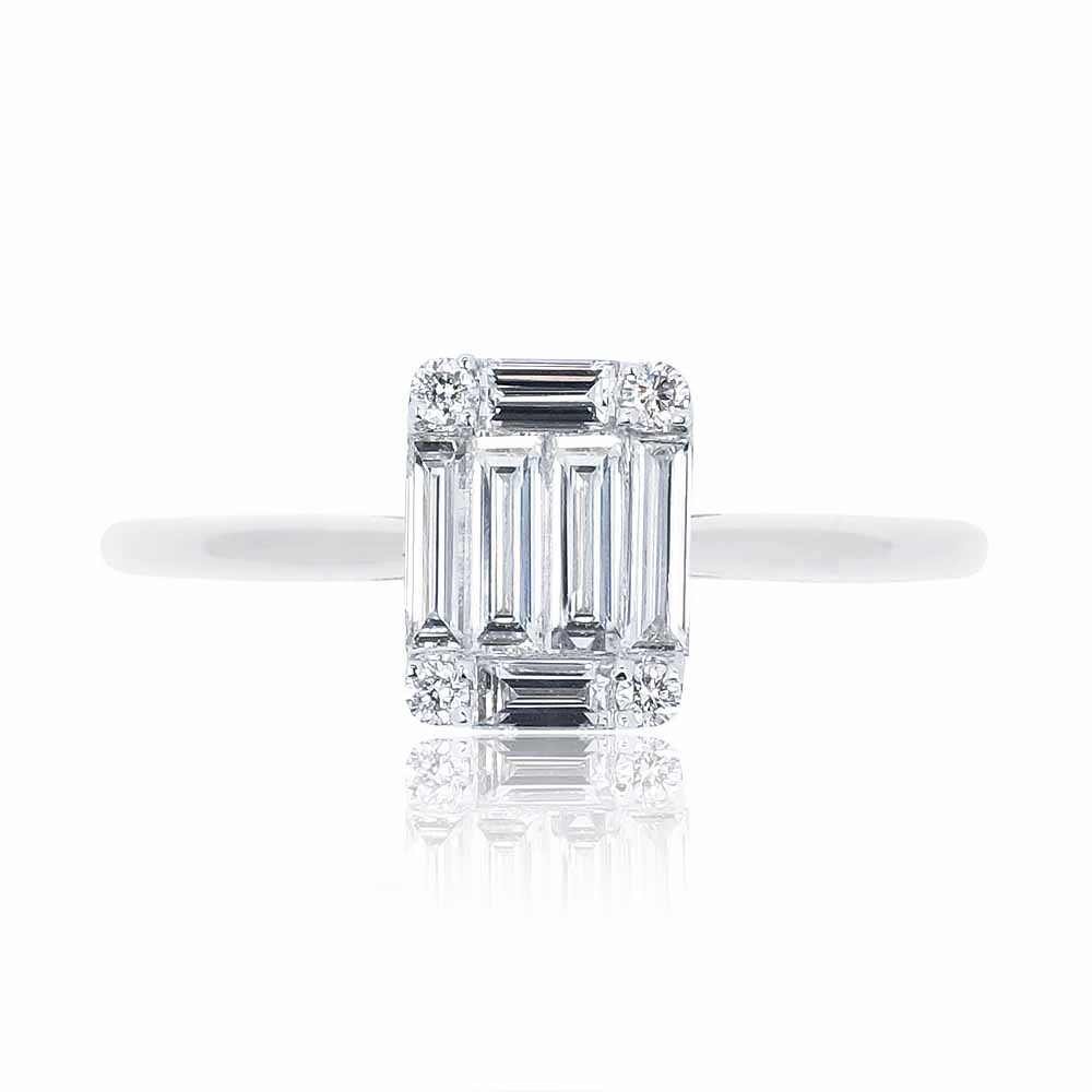White & Black Signature: Baguette Gyémánt Eljegyzési Gyűrű - 0,3 Karát