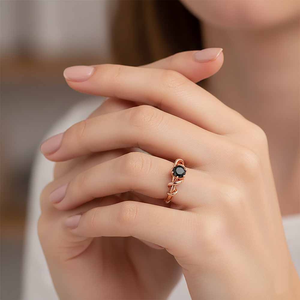 Rosegold-ból készült LIKO eljegyzési gyűrű középen fekete gyémánt kővel és csavart mintával