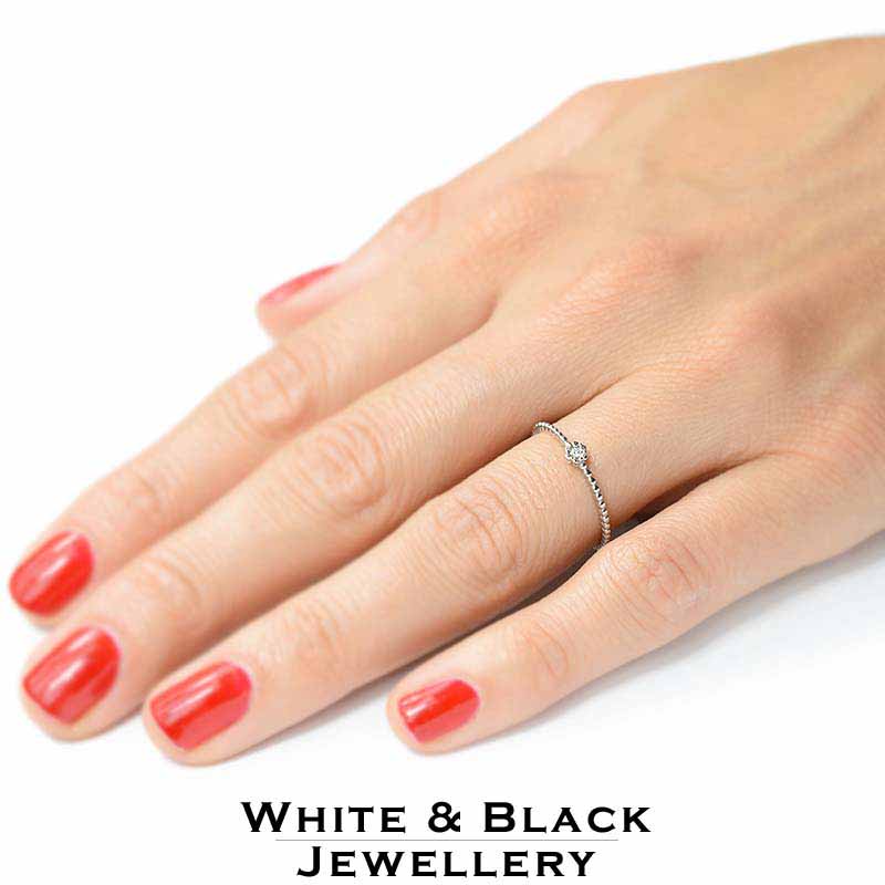 White & Black Classics: Beads Fehérarany Eljegyzési Gyűrű Gyémántokkal