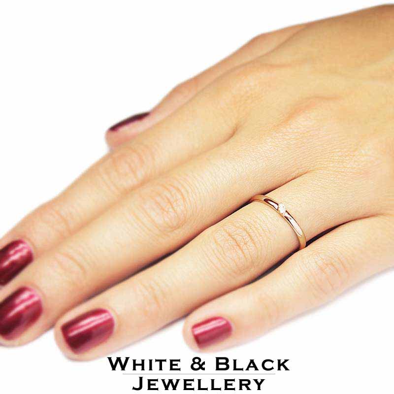 Két apró valódi gyémánt kővel díszített 14 karátos rose arany gyűrű, akár eljegyzésre