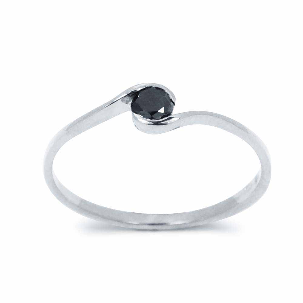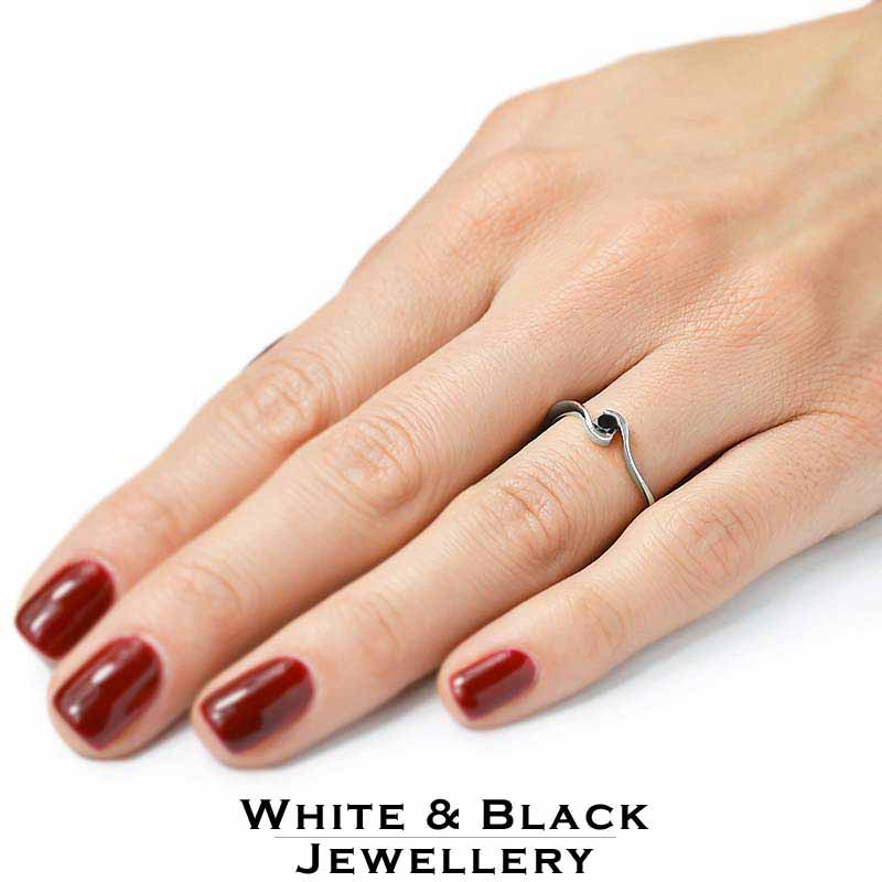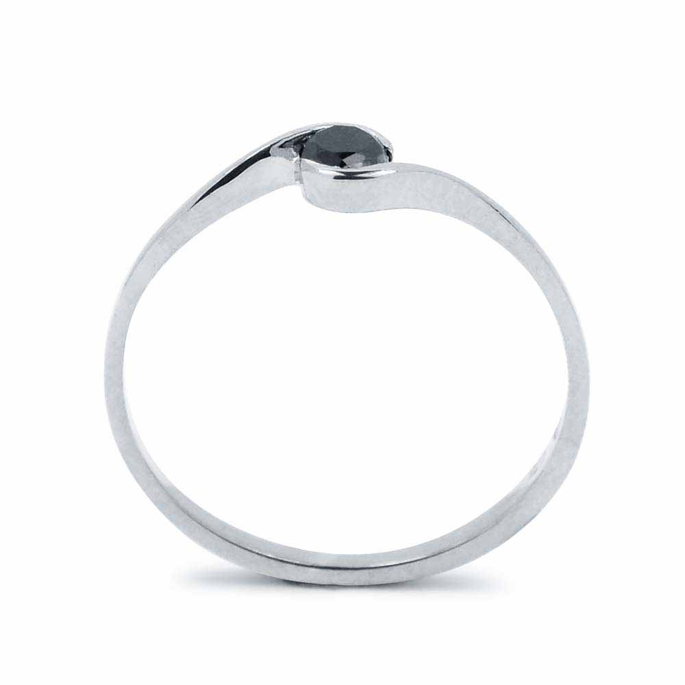 White & Black Solitaire: Eljegyzési Gyűrű 3,4mm-es Fekete Gyémánttal - Fehérarany