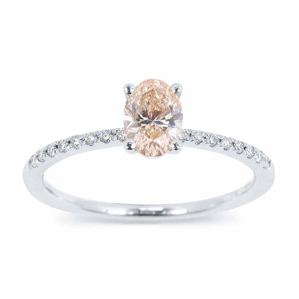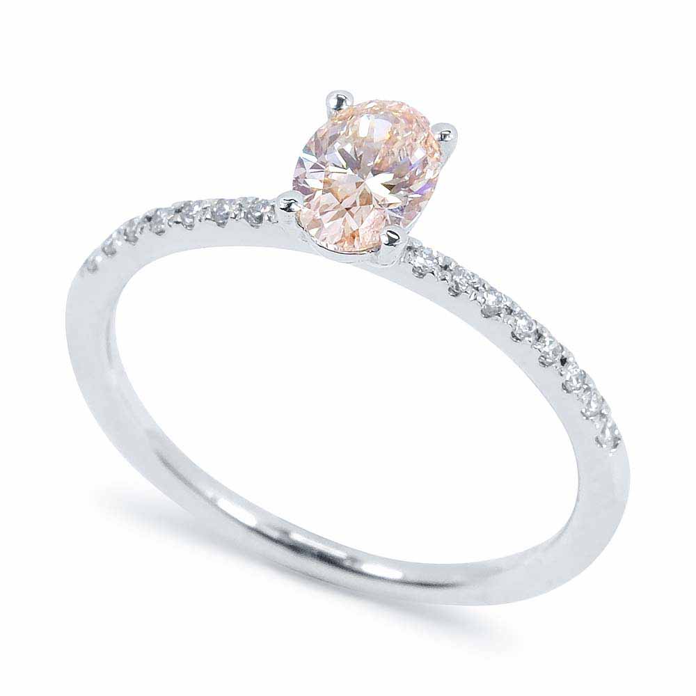 Labor ovális gyémánt eljegyzési gyűrű fehéraranyból - 0,66 karát - Rózsaszín - IGI