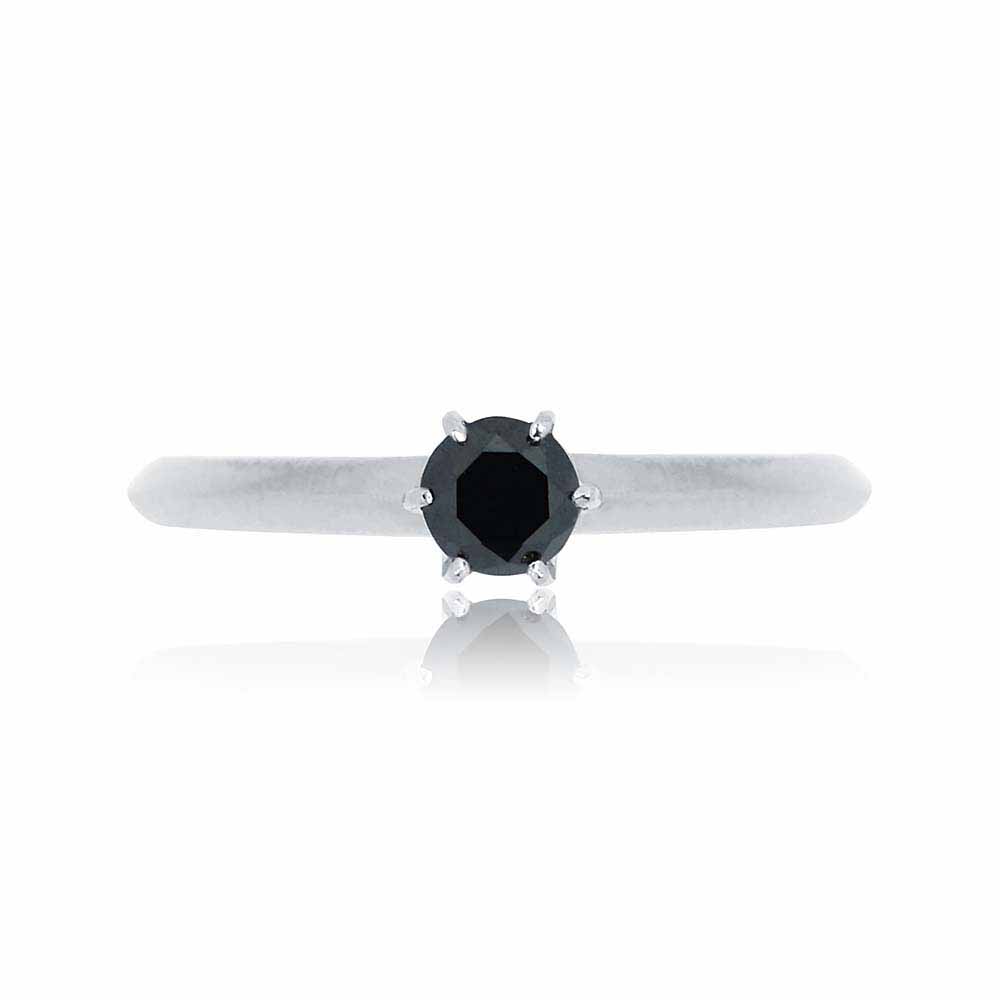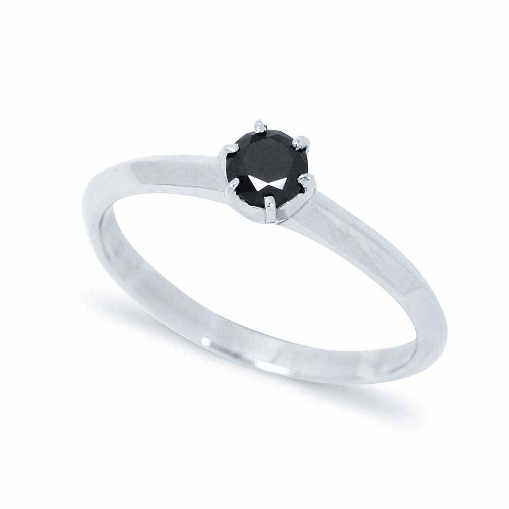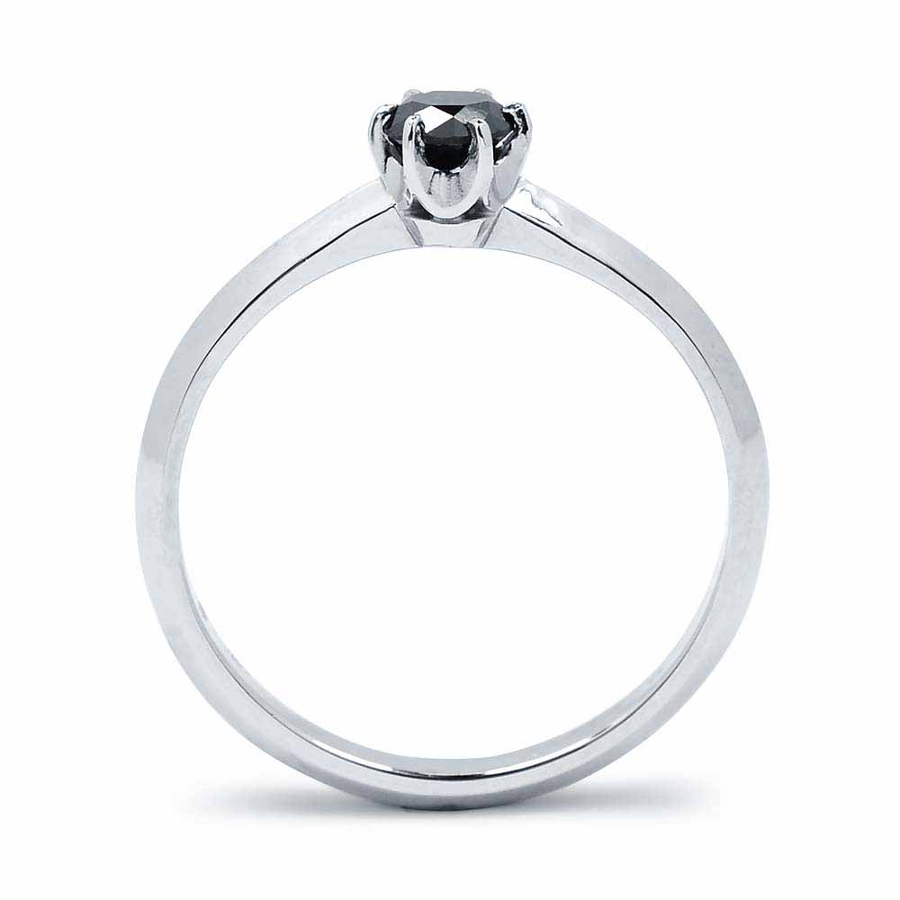 White & Black Solitaire: Eljegyzési Gyűrű 4,0mm-es Fekete Gyémánttal - Fehérarany