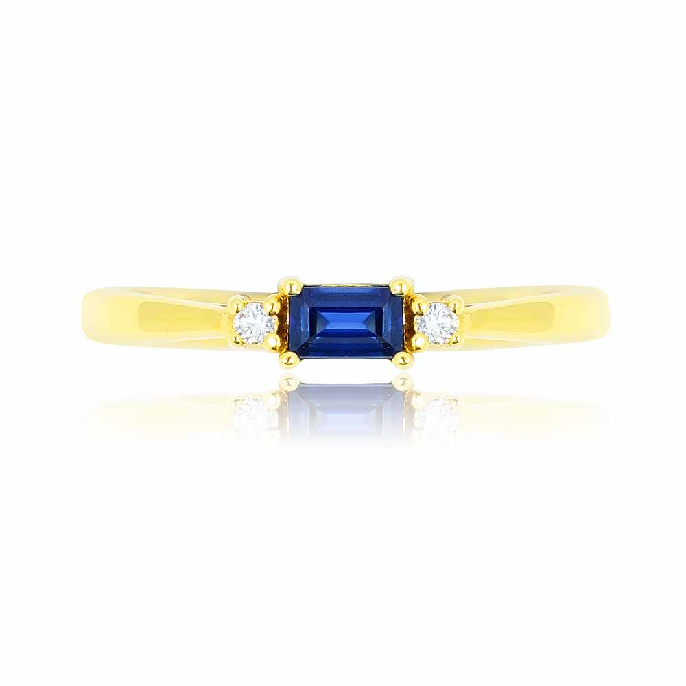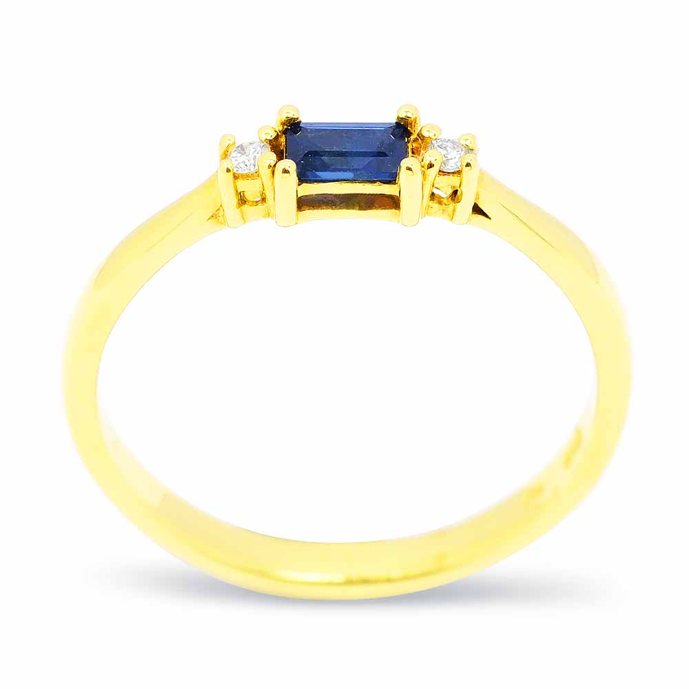 Zafír köves gyűrű, oldalt két apró gyémánttal, 14K aranyból - Germain