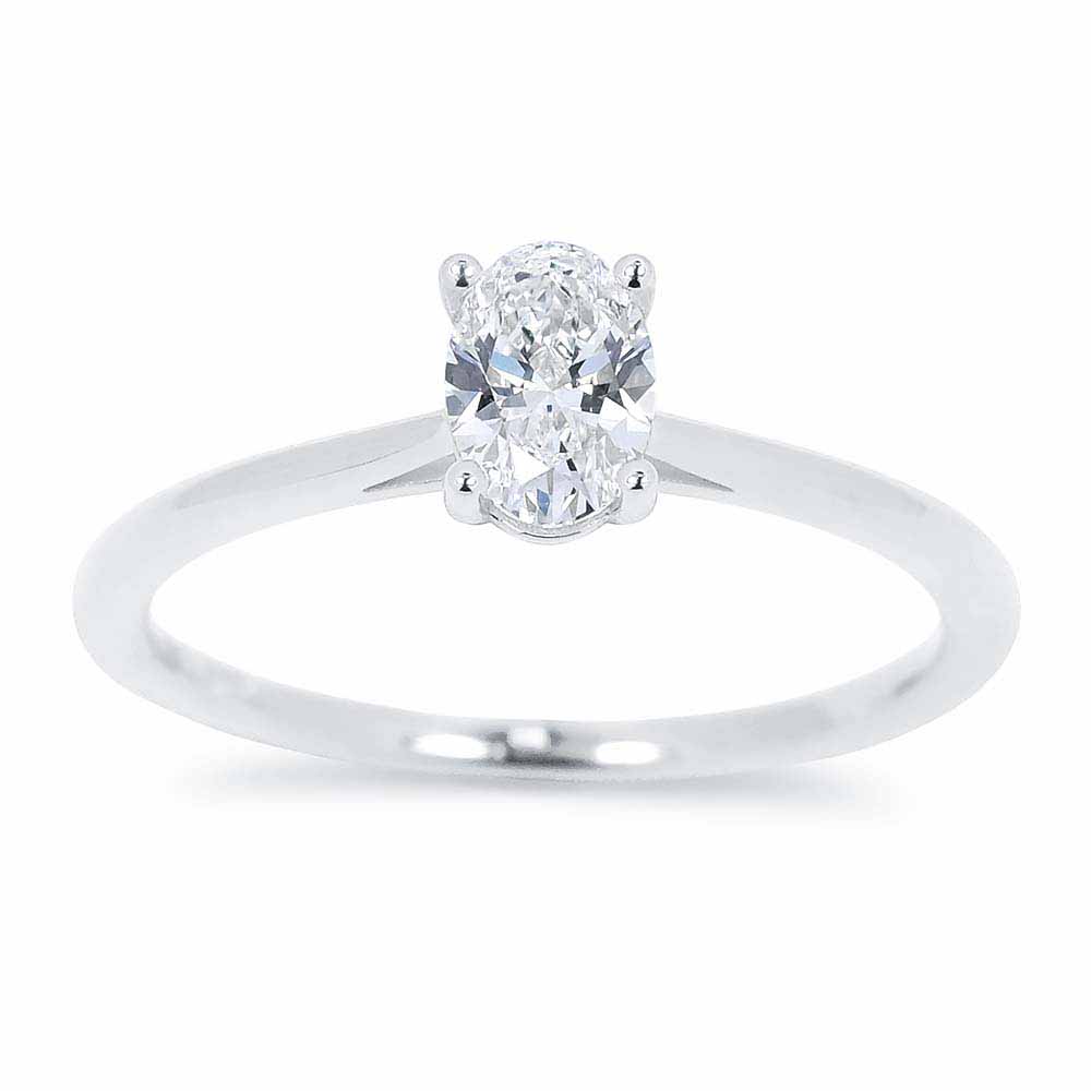 White & Black Solitaire: Ovális Gyémánt Eljegyzési Gyűrű - 0,5 Karát - Fehérarany