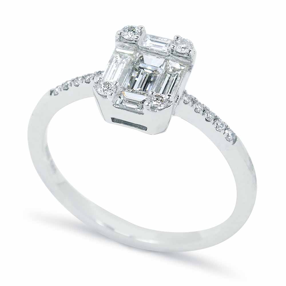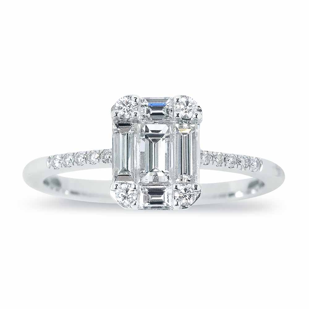 0,75 karátos eljegyzési gyűrű válogatott baguette és briliáns gyémánt kövekkel - 14K fehérarany