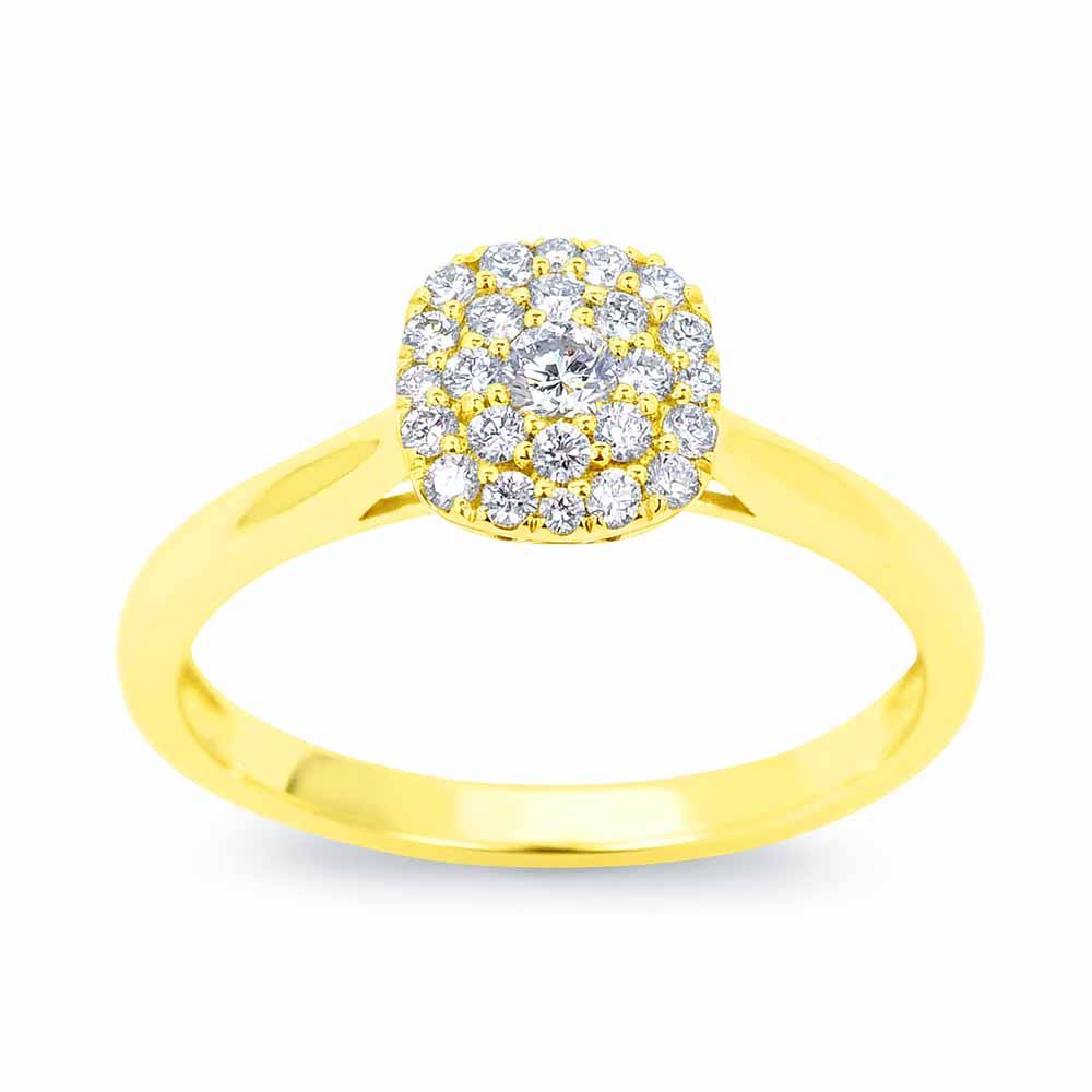 0,23 karát valódi gyémánttal készült eljegyzési gyűrű szorosan összeillesztett drágakövekkel - 14K arany
