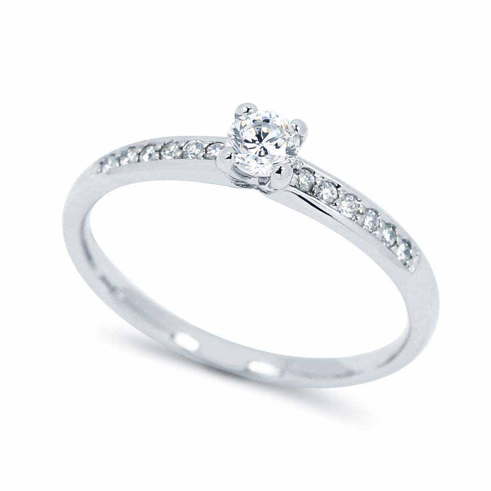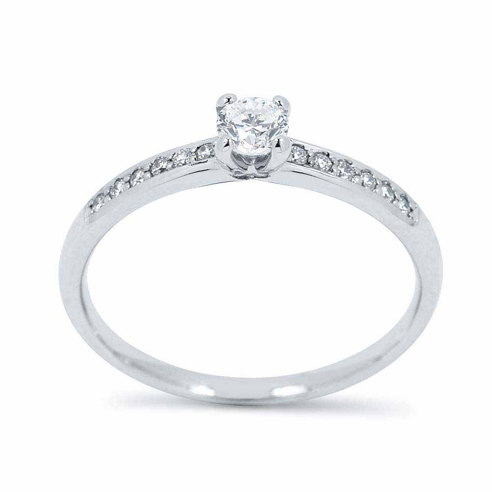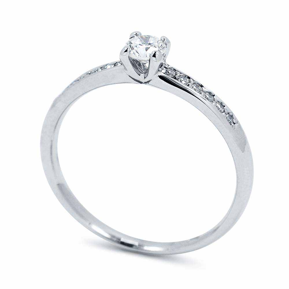 0,28 karátos gyémánt eljegyzési gyűrű 14 karátos fehér aranyból készítve, az oldalában is briliánsokkal