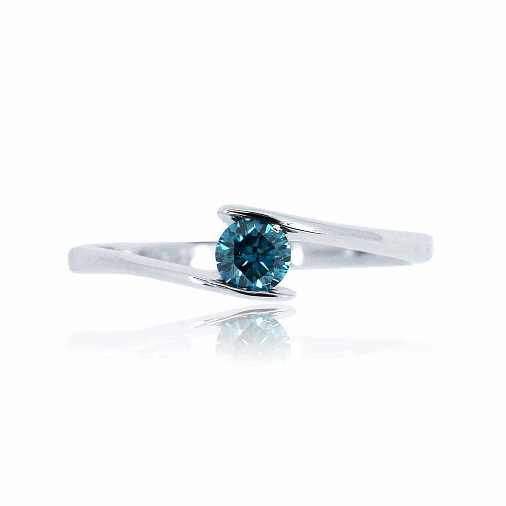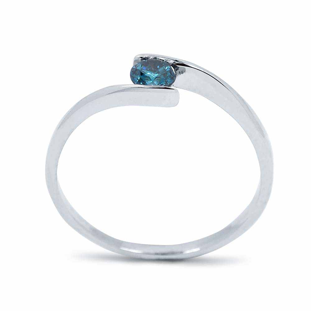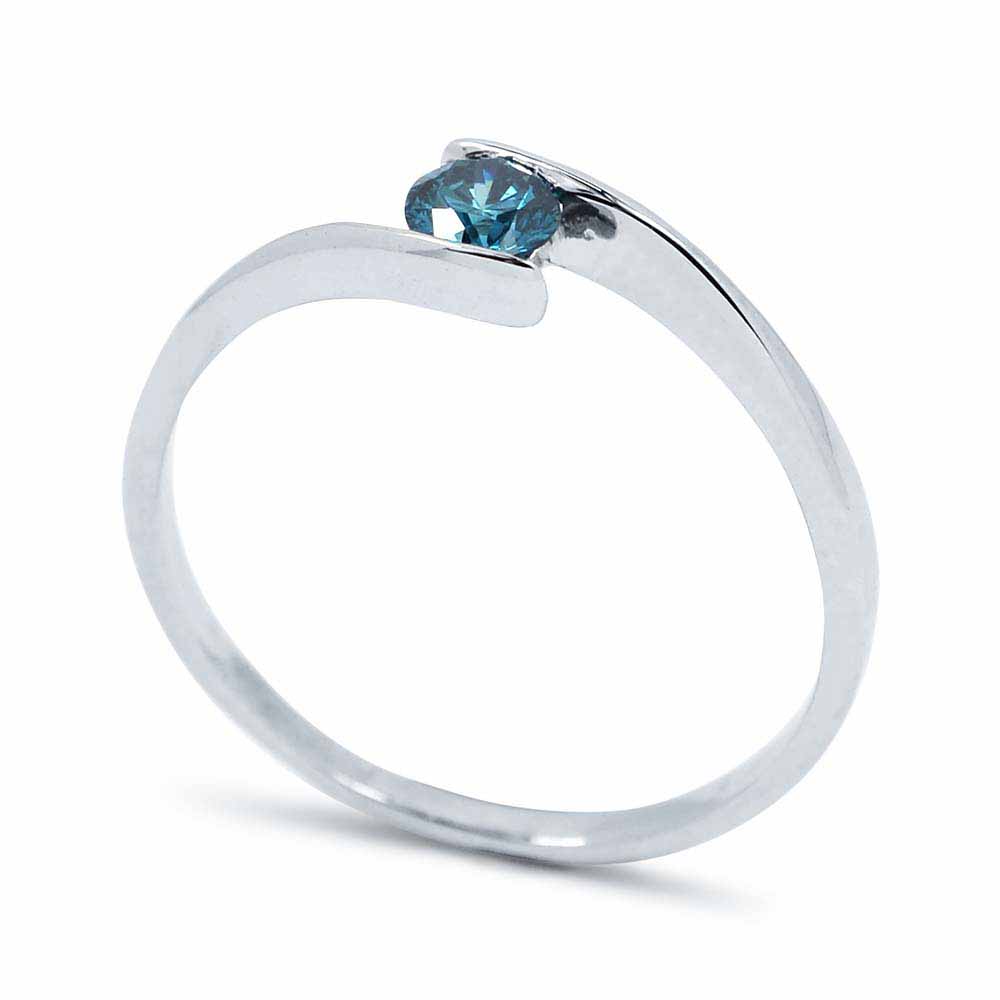 Fehérarany eljegyzési gyűrű 3,8mm-es kék gyémánttal, 14K, eltolt foglalatban - 0,18ct