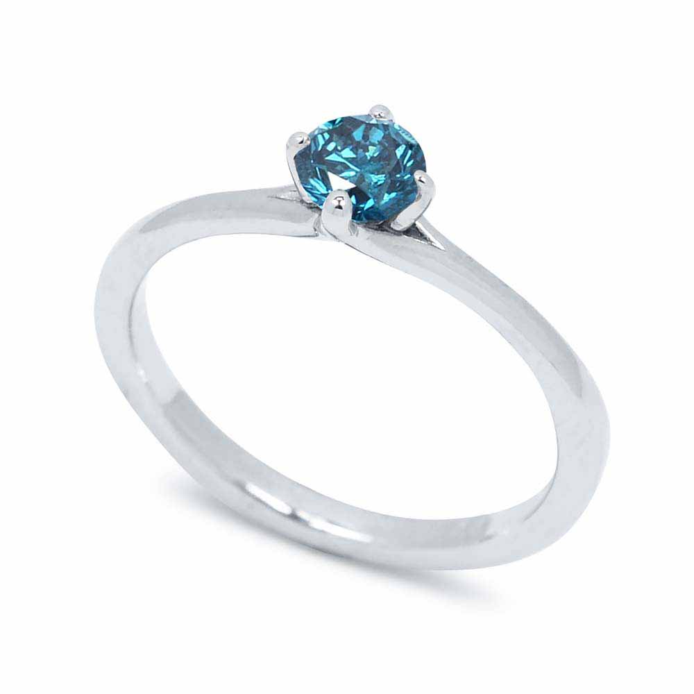 Eljegyzési gyűrű - 4,5mm kék gyémánttal - fehérarany - megrendelésre