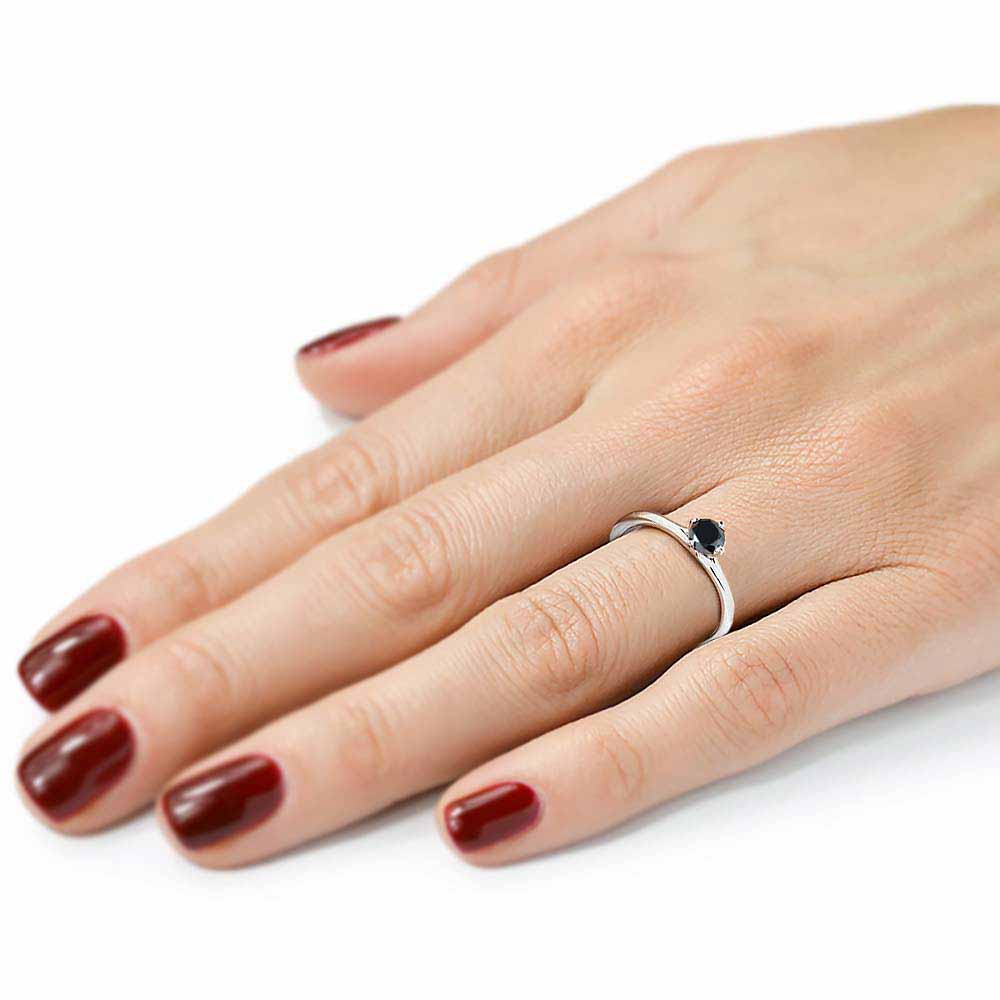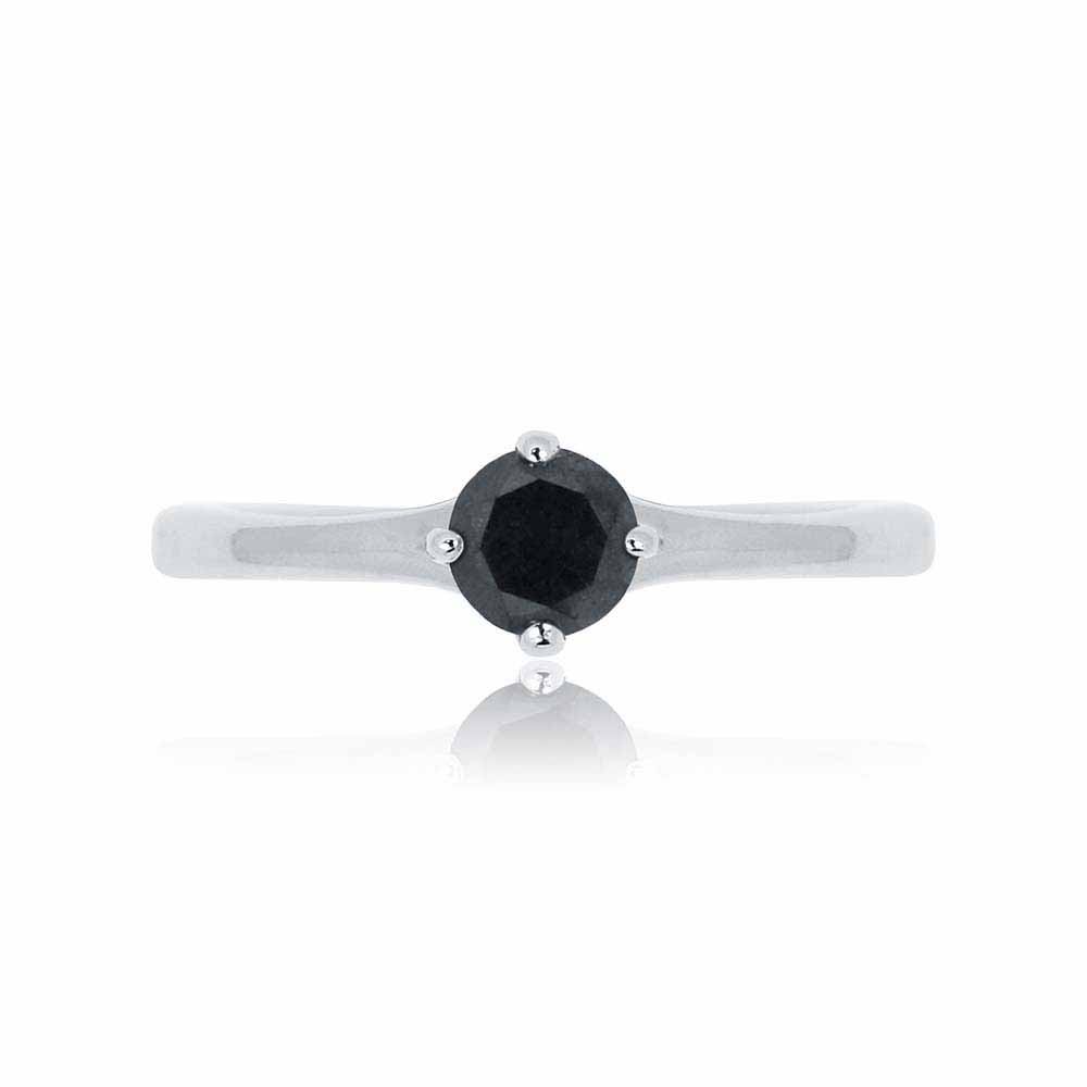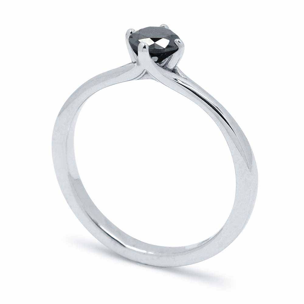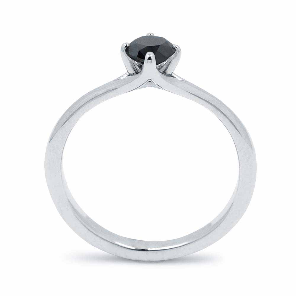 White & Black Solitaire: Eljegyzési Gyűrű 4,1mm-es Fekete Gyémánt Kővel - Fehérarany