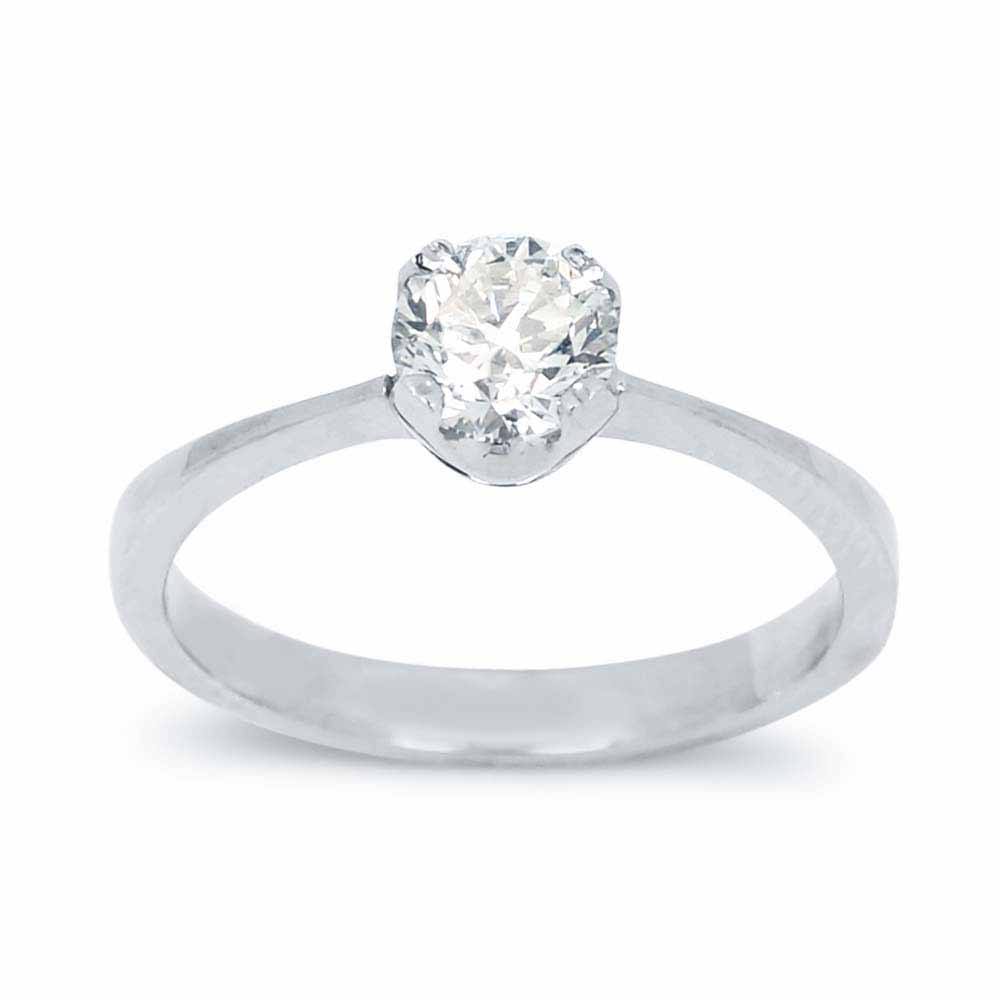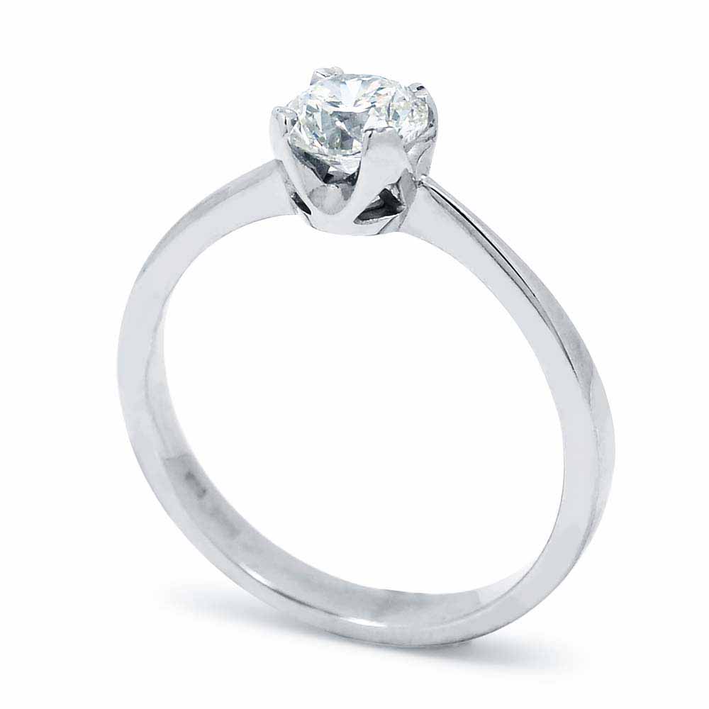 Csodás brillanciájú 5,1mm átmérőjű briliáns csiszolású labor gyémánttal foglalt klasszikus fehérarany eljegyzési gyűrű