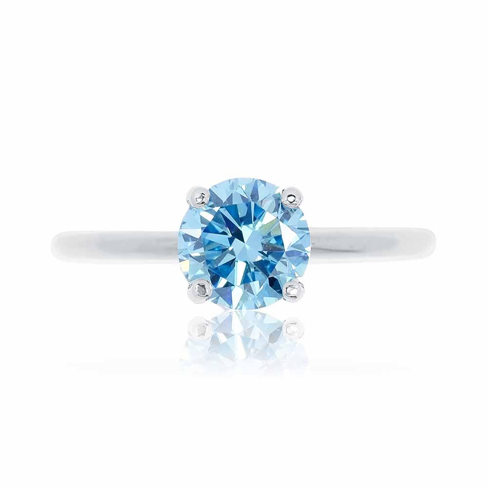 - Egy darab 6,5mm átmérőjű briliáns csiszolású, mesterséges gyémánt (1,02 karát, 'fancy vivid blue' szín, VVS2 tisztaság, 3xExcellent, IGI certifikát)