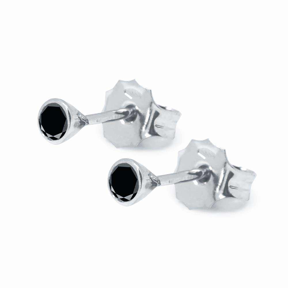 Fekete gyémánt fülbevaló, fehérarany - 3,0mm - 0,278 karát