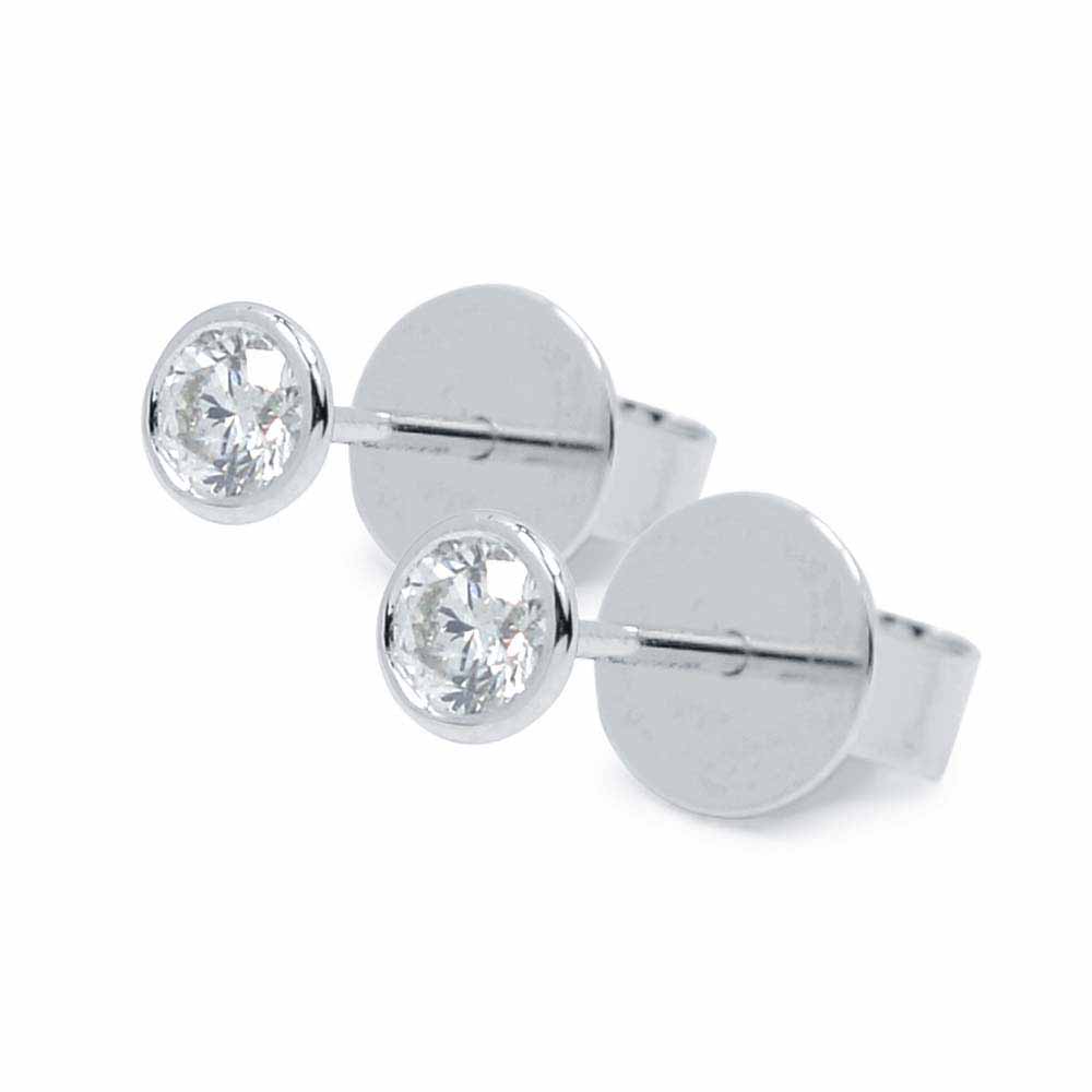14 karátos fehéraranyból kézzel készített gyémánt fülbevaló két darab 3,2mm átmérőjű, valódi briliáns gyémánttal díszítve, vékony keretben, tölcsér alakú foglalatban. A gyémántok magas minőségű, F színű és VS1 tisztaságú kövek, a kettő együtt 0,28 karát. Betűzős zárral, stekkerrel rögzül, a gyémánt fülbevaló pár súlya 1,0 gramm. Készletről megvásárolható.