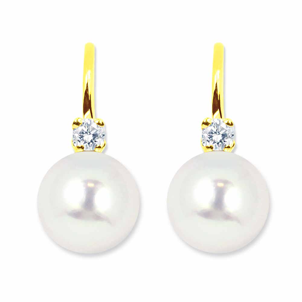 7,5-8mm-es valódi sósvízi igazgyöngyökkel és gyémántokkal foglalt fülbevaló aranyból készítve