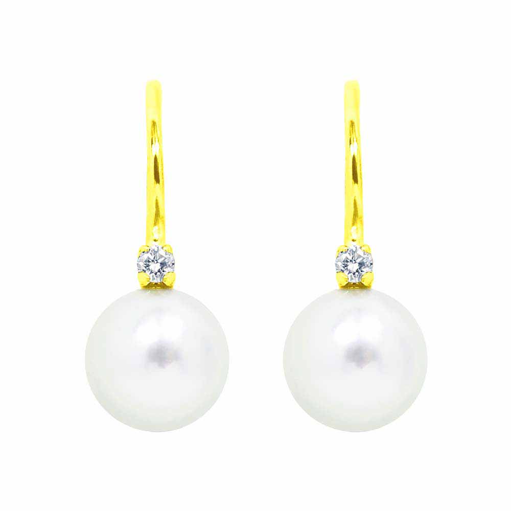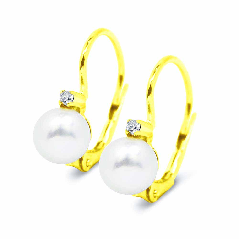 Igazgyöngy fülbevaló gyémánttal - 6-6,5mm - arany - akoya