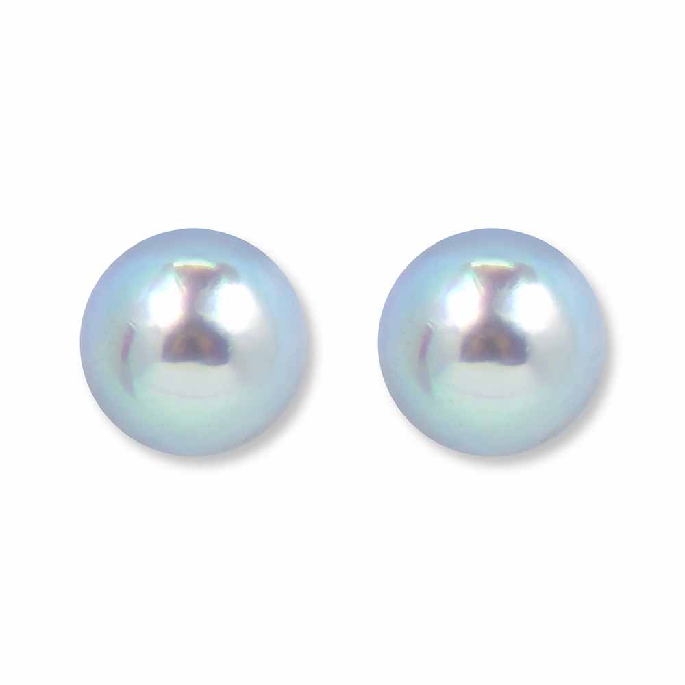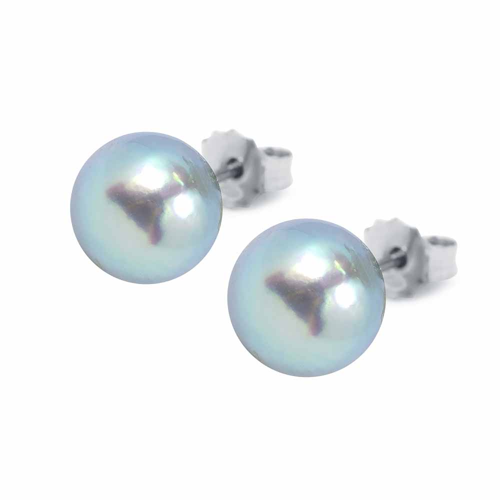 8,7mm-es ritka kék sósvízi akoya igazgyönggyel foglalt srófos fülbevaló 14 karátos fehéraranyból